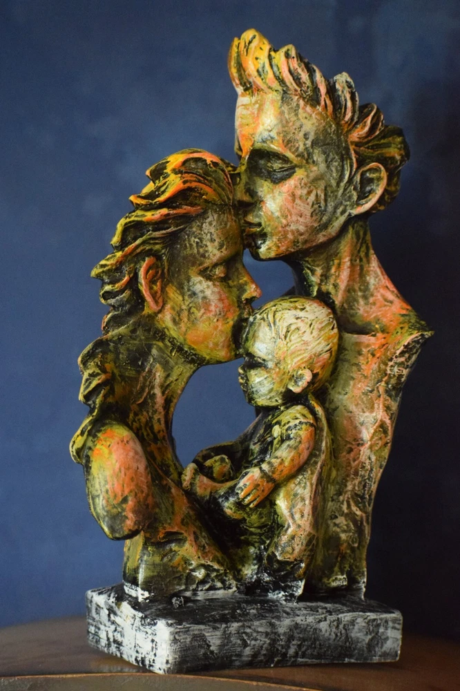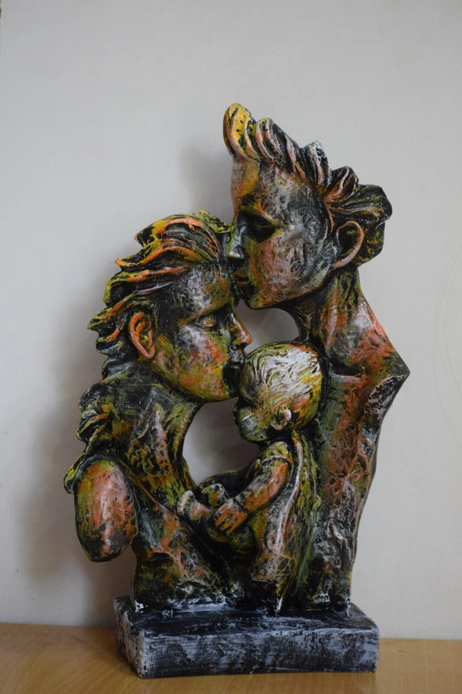 Package Contains - 1 Pc. Father, Mother and Son Face Sculpture/Figurine. Material - Resin Figurine used for Showpieces.Ideal for show cases in homes or children room/table decor. Perfect for display on shelf of store, gifting to your loved ones. Advantages - Elegant and clean, adding a simple and visual enjoyment to the home,pour elegant taste, let your little home more exciting, fluent lines, unique shape, obvious quality, suitable home decoration. GIFT - An eye catching Statue are ideal present on marriage , wedding , house warming , festive occasions also Return Gifting to loved ones & make there celebrations memorable. also for thanksgiving Gift parties. USED IN - Suitable for any interior design pattern, home decor or collection! Decorate your table or decorate your dressing table with this amazing. Ideal for show cases in Homes or Children room / table decor. Perfect for display on shelf of store. Perfect for gifting to your loved ones. Disclaimer - Images are for reference only actual product may vary due to photographic lighting condition. ??The Item will Deliver before Christmas!!!???