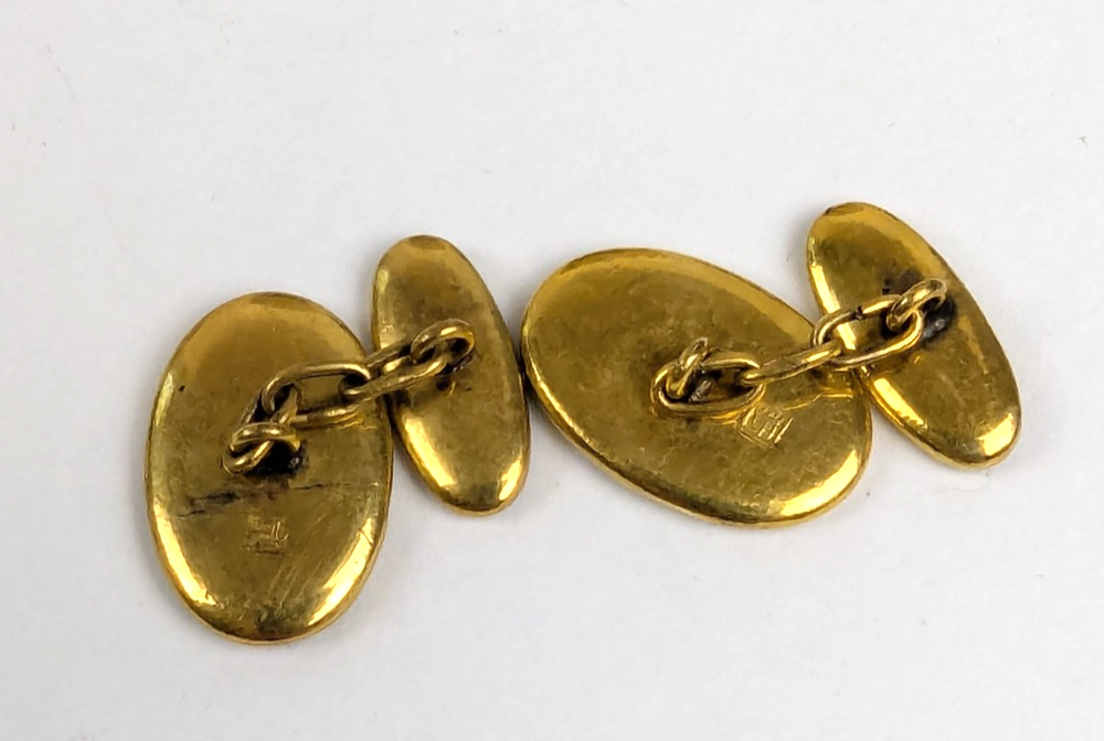 Antique Japanese Sterling Silver and Yellow Gold Damascene Inlay Cufflink Buttons. Beautifully crafted with inlay silver and gold featuring a village scene with Mt. Fuji, Pagodas and trees with a Moon and Phoenix bird on the other side. Hallmarked with a Japanese mark on the backside. Lovely Intricate Inlay Cufflinks in excellent estate condition. No faults 5302