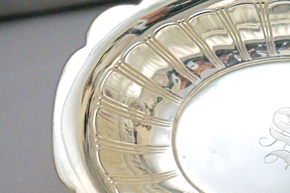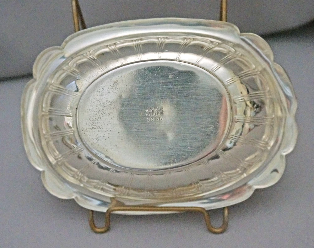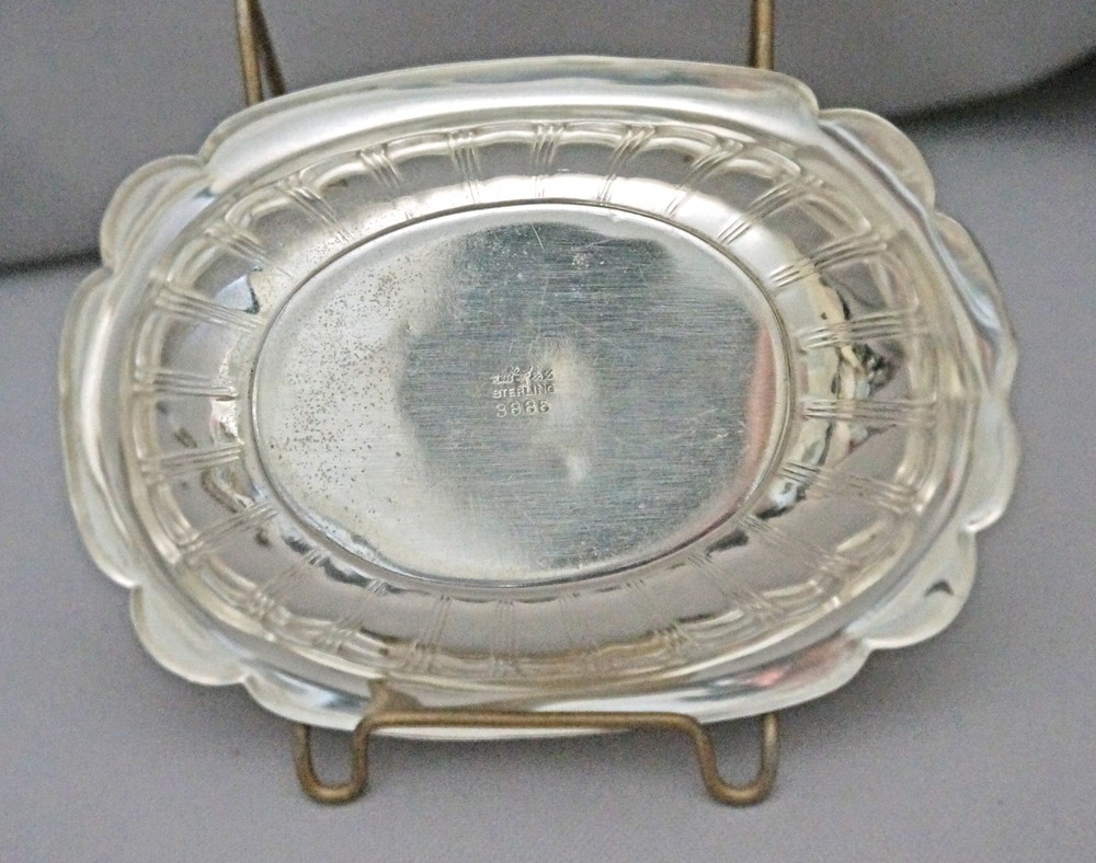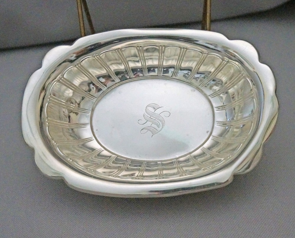 Antique Art Deco R. Wallace Sterling Silver Oval Bowl 100g This is a lovely sterling silver oval shape bowl by ca. 1917-1950 R. Wallace Silver Co.. It has scalloped rim, side has narrow panes all around. Nice art deco piece. It is fully signed as shown. It measures 6.75 x 4 x 1” and weighs 100g. It is in great condition without dents, dings. It has S monogram. We are listing nice sterling pieces, please check them all. NOTE: We have been in antiques business over 30 years. We have been selling on net over 10 years, shipped thousands of thousands items safely. Due to health concerns we have closed our shop 2 years ago. We decided to try eBay to sell our inventory. We finally decided to retire, selling our inventory from our home. Please buy from us with confidence. Payment Transactions must be completed within 5 days of sale. We will be glad to combine your purchases to save you from shipping. If you buy multiple clothing, let me know so I’ll send you a combined invoice. We accept payments through eBay and Paypal only. We don’t accept any other alternative payments. We cannot text you, call you, email you directly. It is against eBay rules. Shipping SHIPPING within the U.S.: Buyer pays for shipping & insurance. Use the shipping calculator to get an accurate shipping quote. We post the size and the weight of our items, eBay calculates the shipping cost through USPS. We charge what USPS charges. Please email us if you are actively bidding on other items. Discounts will be given if items can be combined safely in the same box. We ship mostly via USPS, If you prefer UPS or FedEx, please let me know. We ship worldwide. International buyers: Please check the shipping costs to your country at USPS web site. Please beware first class shipping can’t be tracked and doesn’t have insurance coverage.