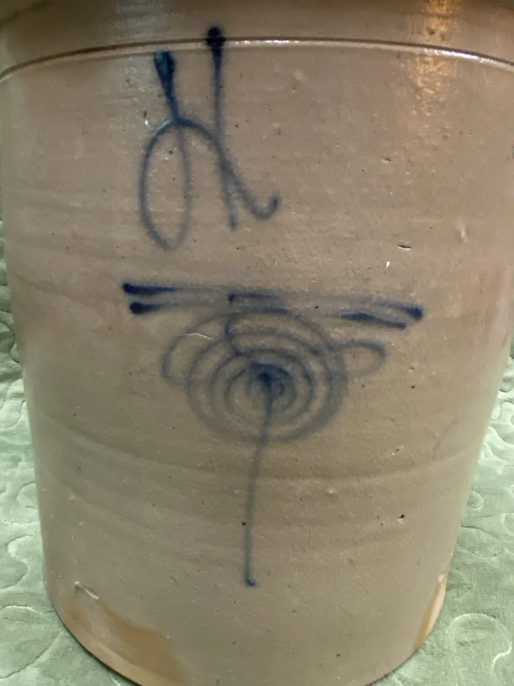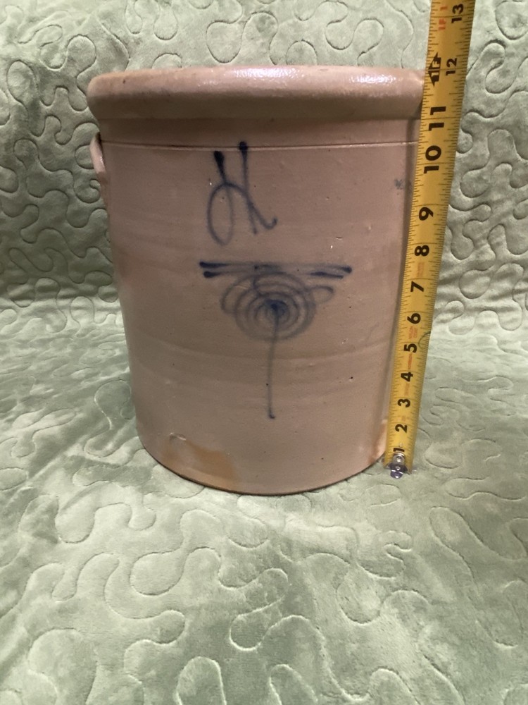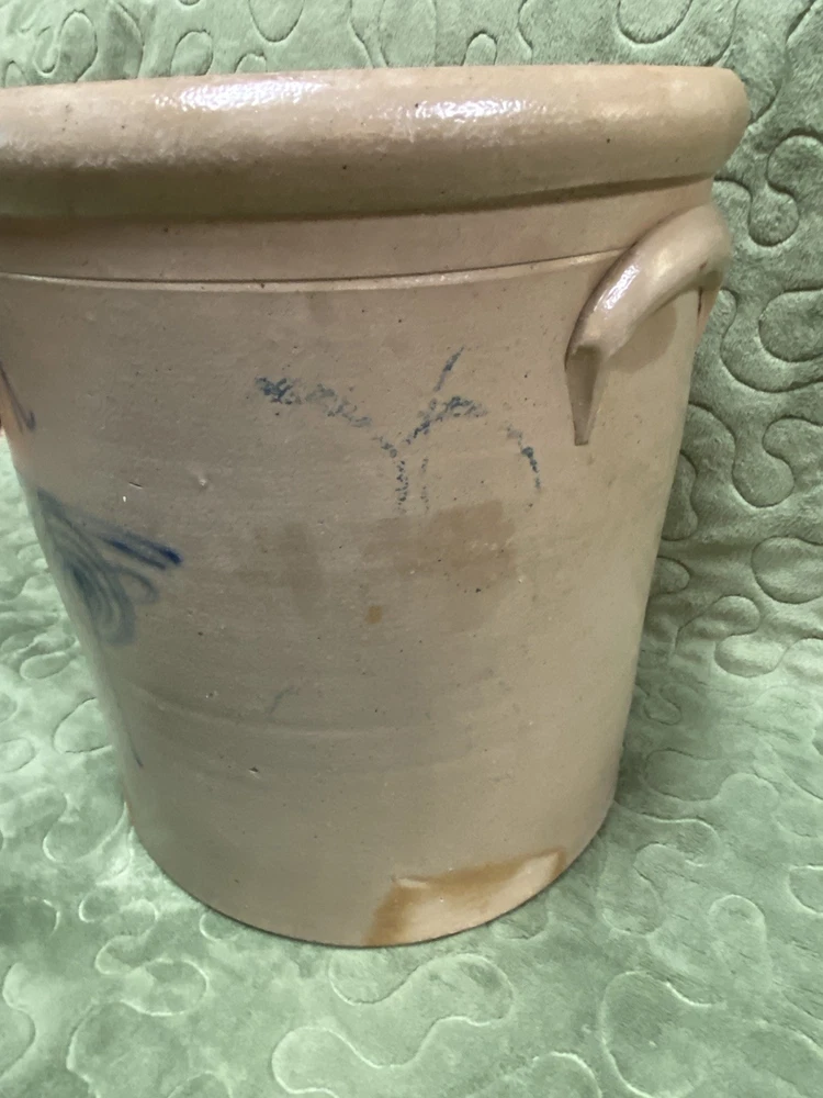 Antique Bee Sting Pottery Stoneware Salt Glaze ——- 4 Gallon Crock with handles ——- Bee Sting design —— See photos for measurements and additional details.