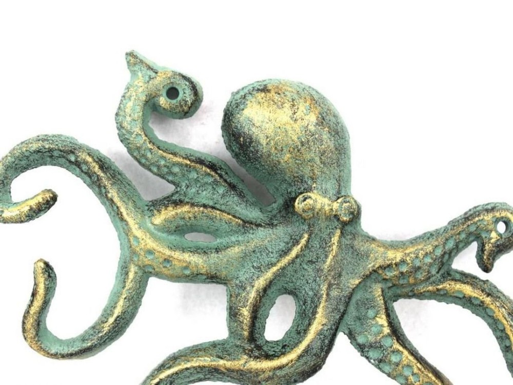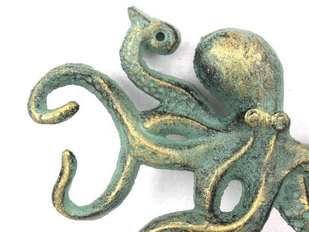 This antique bronze cast iron octopus hook 11is the perfect addition for any nautical themed home. Handcrafted from cast iron, these antique bronze hook allow for easy decorative mounting, ideal for hanging accessories. Display this decorative piece to add a nautical theme to any room and show those who visit your home your Affinity for the nautical Sea-Faring lifestyle. Functional hook for clothing or Accessories classic vintage rustic appearance Solid and heavy handcrafted from cast iron Note mounting hardware not included for all our products over 3000 unique nautical items available Buy factory direct all items designed and manufactured by us
