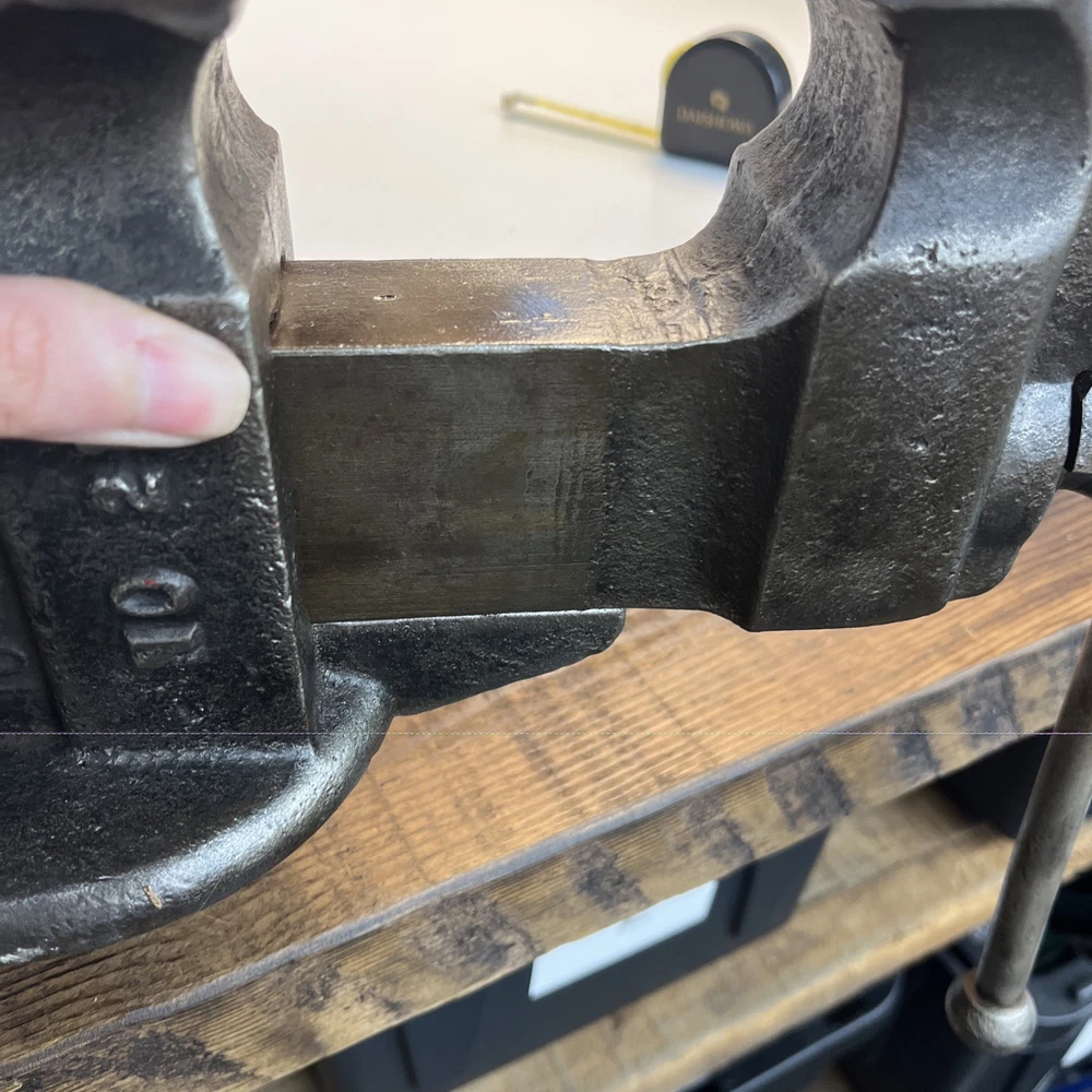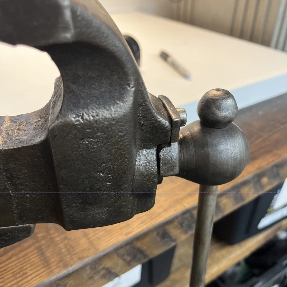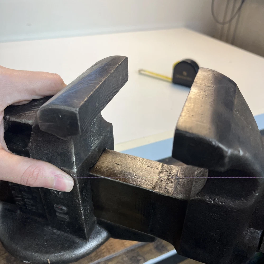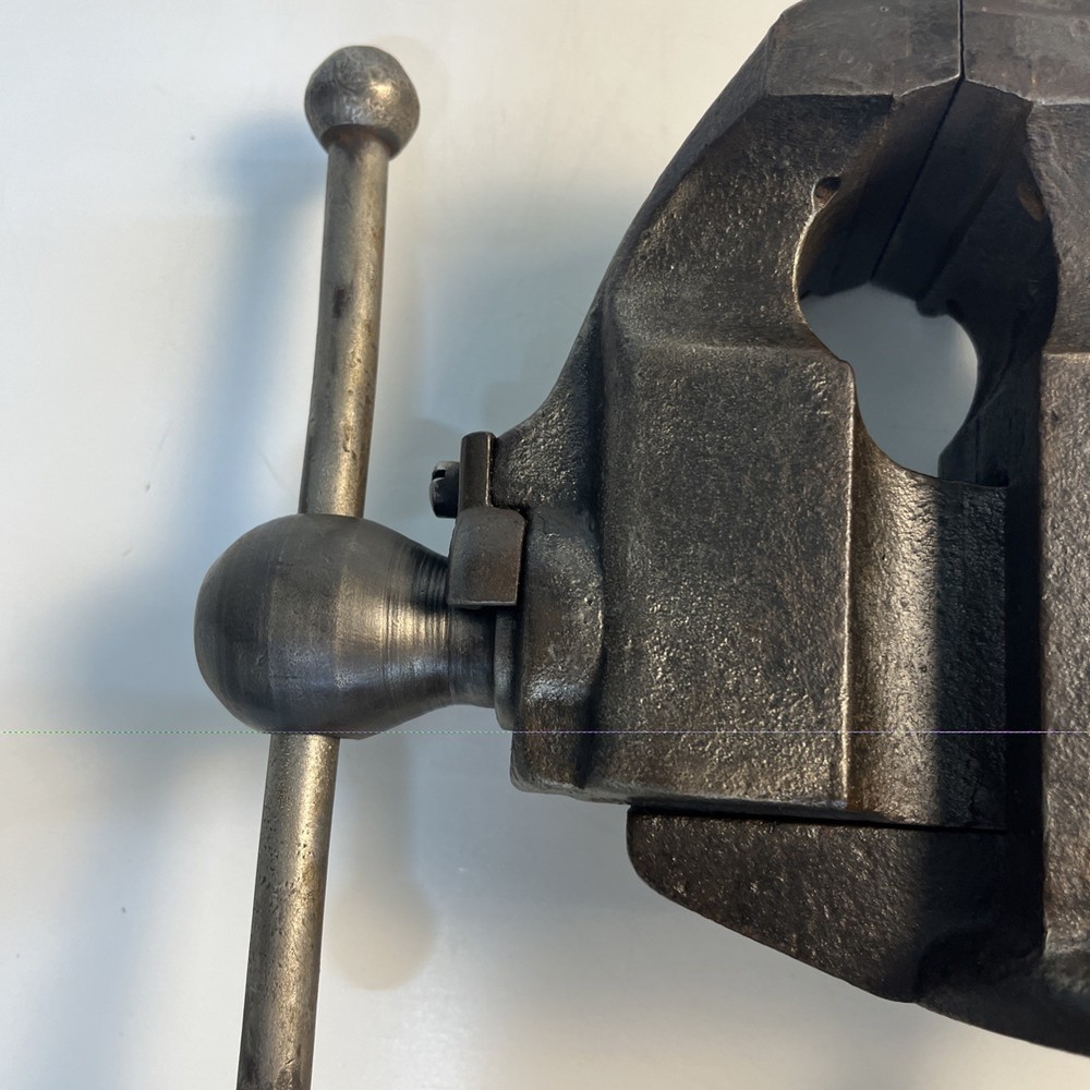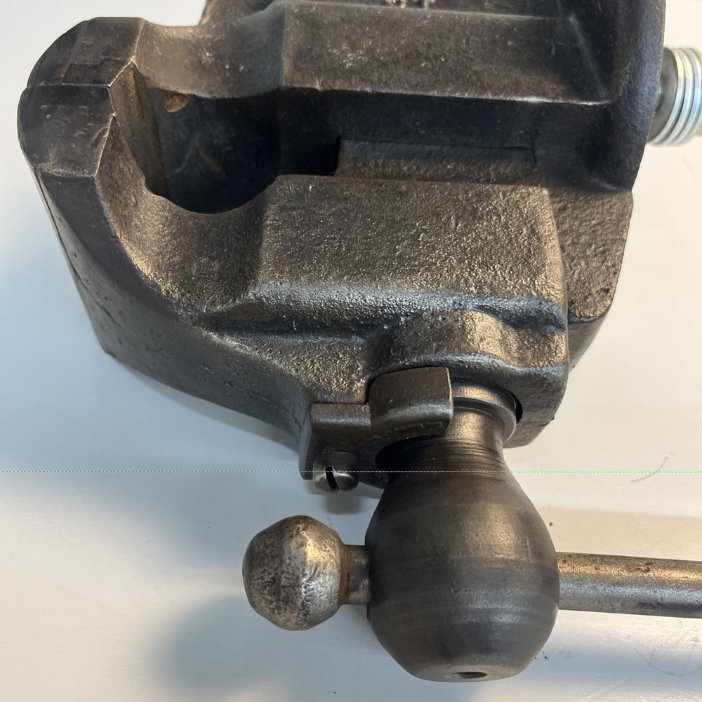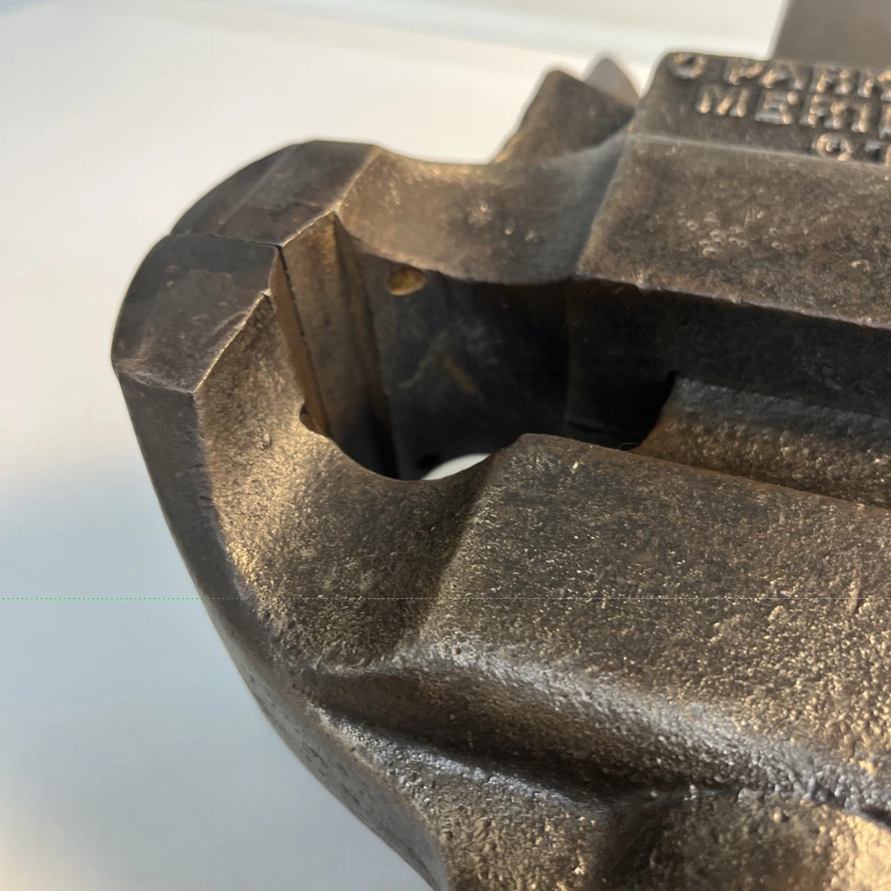 Vintage C. Parker Co. bench vise, No. 21, made in Meriden, Connecticut. This vise features 3 1/8” wide jaws and early patent dates cast into the body: • Patented 1867 Heavy cast construction with original early form. The vise opens and closes smoothly and the jaw faces seat evenly. A replacement bolt/nut is present on the mounting assembly, as shown. Weight is 22.5 lbs. Ideal for: • Period workshop restoration • Blacksmith or machinist bench setup • Antique tool collecting • Industrial décor / display • Functional shop use (built to last) ⸻ Condition Preowned vintage tool in working condition. Shows expected age wear, surface darkening, and light oxidation. Replacement hardware present on base bolt. Jaws align and move properly. Please review photos for exact condition and patina.