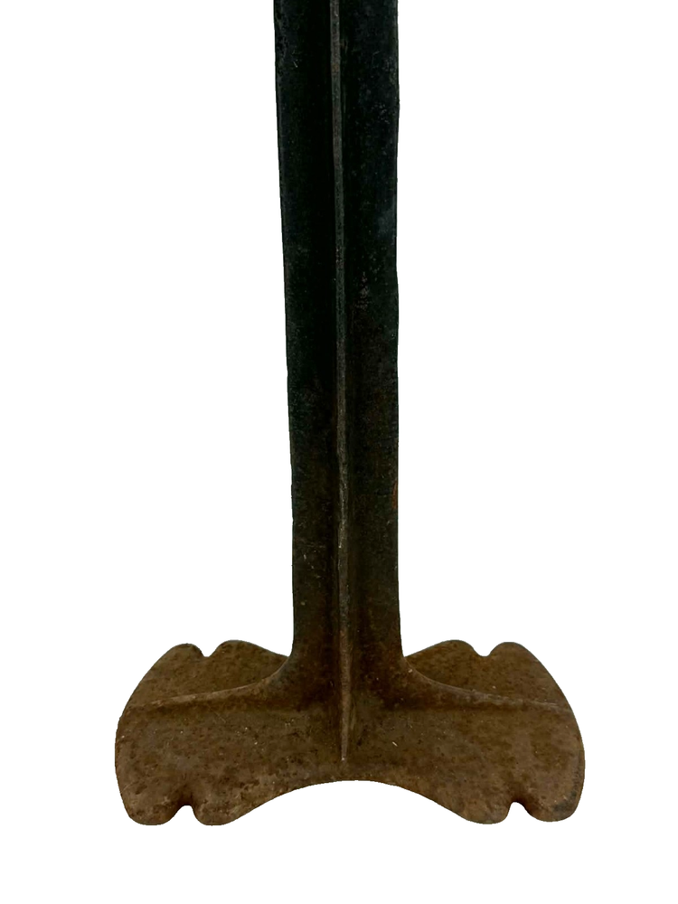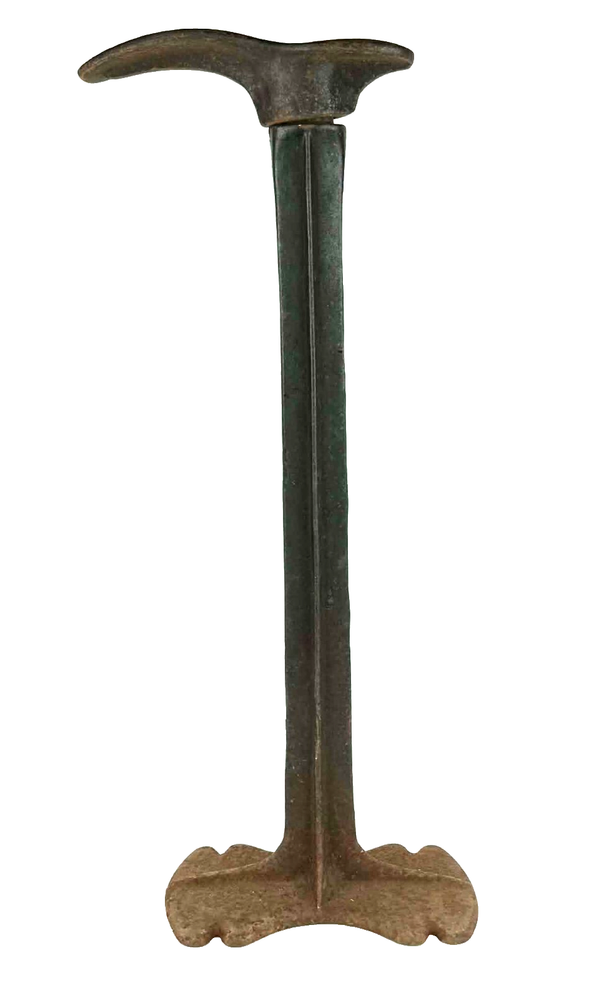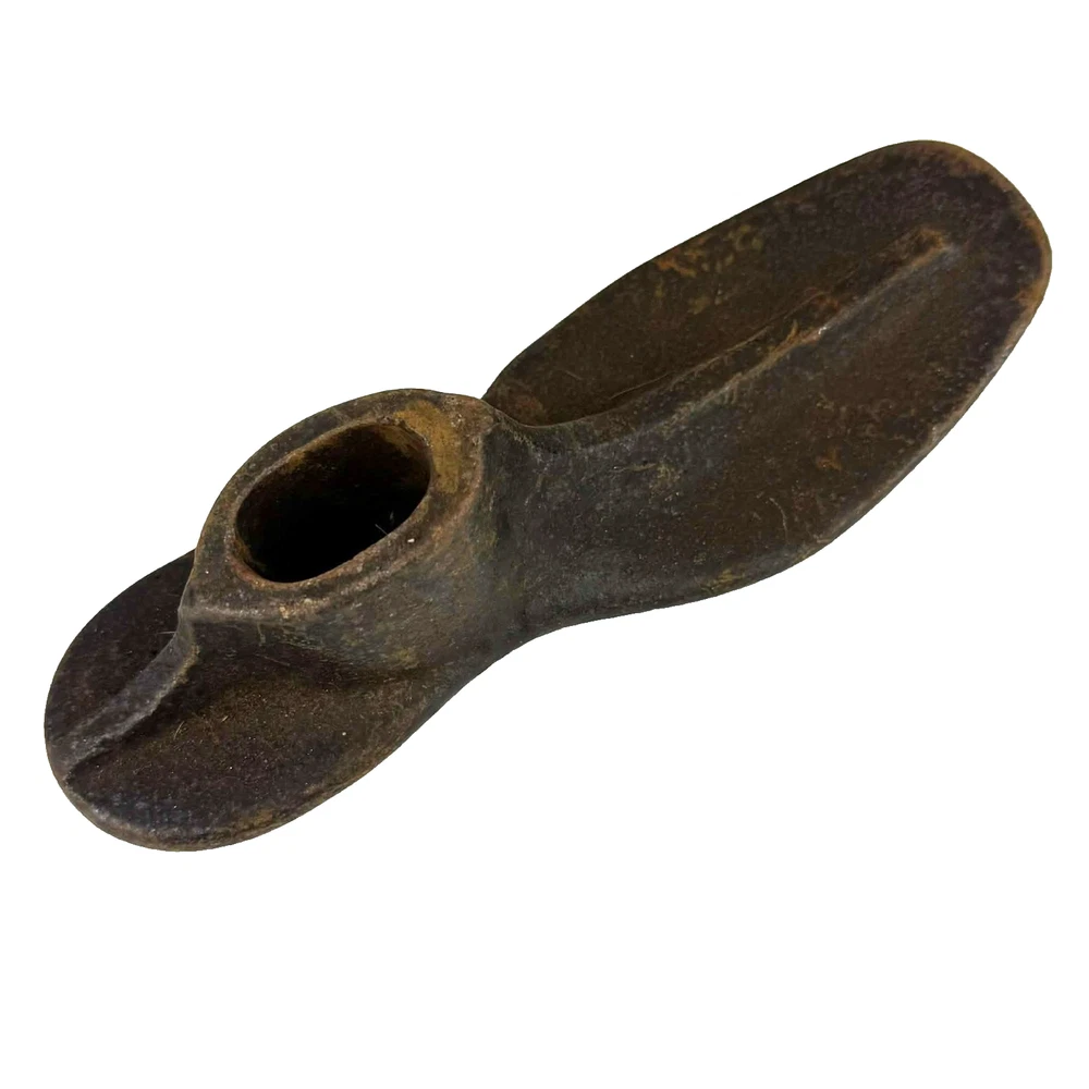 The Antique Cast Iron Cobbler's Shoe Shoemaker Stand Boot Anvil is a vintage tool used for shaping and repairing shoes. Made in the United States, this piece of collectible hardware embodies craftsmanship and traditional shoe-making techniques. Perfect for collectors or those looking to add a unique touch to their home decor, this cobbler's shoe stand is both functional and decorative.