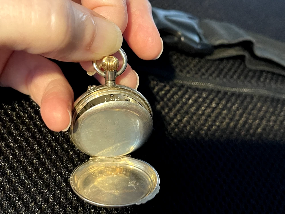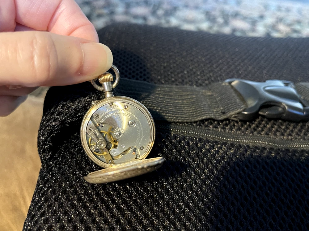 Gorgeous ladies open face pocket watch. It is unbranded (as far as I am willing to probe) it is 800 silver and made in Switzerland. This is a lever set watch with a porcelain enamel face. It is not running, I have had it in a jewelry box of a long time. It was always closed but some dust and humidity obviously is hindering it. Please ask any questions before bidding. I accept any reasonable offers and will combine shipping with multiple purchases.