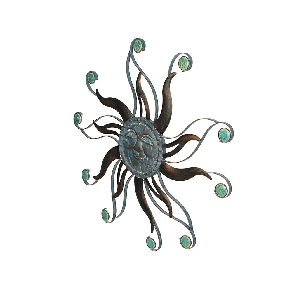 Generous Dimensions - This sun face wall decor boasts a substantial 22-inch diameter and 0.5-inch depth, making it a captivating centerpiece for any wall in your home. Robust Craftsmanship - Crafted from sturdy metal, this piece ensures years of indoor or outdoor display, embodying both durability and style for your living spaces. Artistic Finish - Its antiqued copper finish, combined with intricate ceramic bead accents, infuses vibrant colors, adding a touch of elegance to any wall it graces. Our eBay Store About Us Add to Favorite Sellers Antique Copper Finish Metal Sun Face Wall Decor Hanging: A Stunning 22-Inch Diameter Indoor/Outdoor Artwork Adorned with Intricate Ceramic Bead Accents Generous Dimensions - This sun face wall decor boasts a substantial 22-inch diameter and 0.5-inch depth, making it a captivating centerpiece for any wall in your home. Robust Craftsmanship - Crafted from sturdy metal, this piece ensures years of indoor or outdoor display, embodying both durability and style for your living spaces. Artistic Finish - Its antiqued copper finish, combined with intricate ceramic bead accents, infuses vibrant colors, adding a touch of elegance to any wall it graces. Effortless Installation - Designed for convenience, a built-in keyhole hanger on the back allows for quick and easy hanging, transforming your space with minimal effort. Perfect Gift - Whether for yourself or your loved ones, this sun face wall decor serves as an ideal gift idea. Its artistic allure and enduring quality make it a thoughtful and captivating present, elevating any space it adorns. Embrace the warmth of the sun with our exquisite aged copper finish metal smiling sun face wall hanging, a charming addition to your indoor or outdoor decor. Measuring 22 inches in diameter and 0.5 inches deep, this artwork exudes personality, showcasing intricate open and closed work metal rays, along with oxidized verdigris blue-gray embellishments and mottled blue-green ceramic bead accents. This delightful sun face wall hanging becomes an instant focal point, radiating charm on any wall it graces, whether in your home, kitchen, patio, or garden. Its versatile design effortlessly blends with various decor styles, adding a touch of artistic elegance to your space. Hung indoors, it becomes an accent piece, enhancing the ambiance of your living areas. Outdoors, it elevates your patio or garden, infusing nature's charm into your surroundings. Not just a decoration, it is a statement piece, reflecting the artistry of your home. Its large size and intricate detailing make it an exceptional housewarming gift, sure to bring smiles to the faces of your loved ones. Welcome the sun into your home and gift an exquisite piece of art that brightens every corner it graces. Product Details Color Blue Height 22 Length 20.5 Weight 1.85 LB