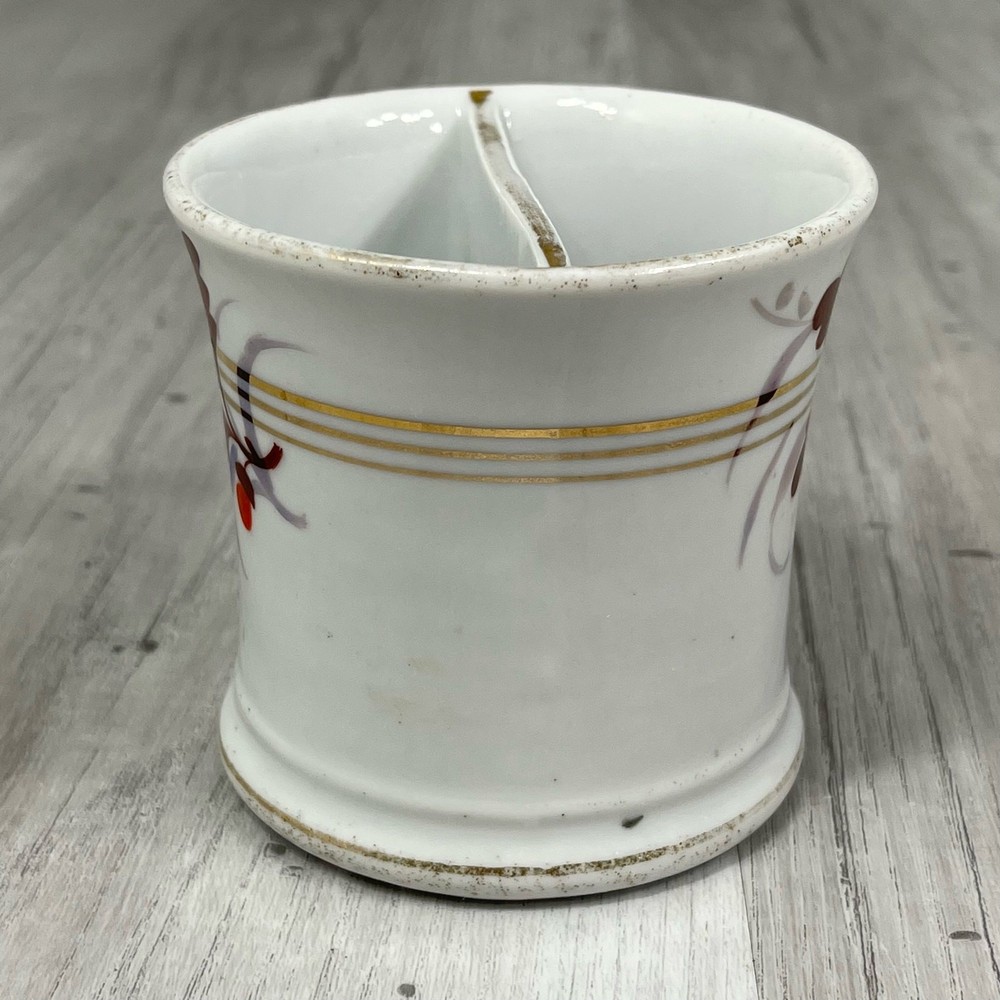 Antique Excelsior Hand Painted Porcelain Oak Leaf Acorn Shaving Scuttle Mug Has some chipping Gold trim has worn off in most places Some staining All can be seen in pictures Great for collectors of vintage grooming items or those who simply appreciate the charm of yesteryear Can be used as beautiful decor on a shelf or filled with air plants and succulents Measurements available upon request May have staining, discoloration, chips, or cracks Any damage can be seen in pictures or in description Colors may differ based on others computer/phone/etc settings Please ask any questions before purchase