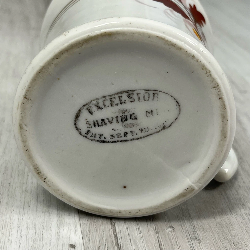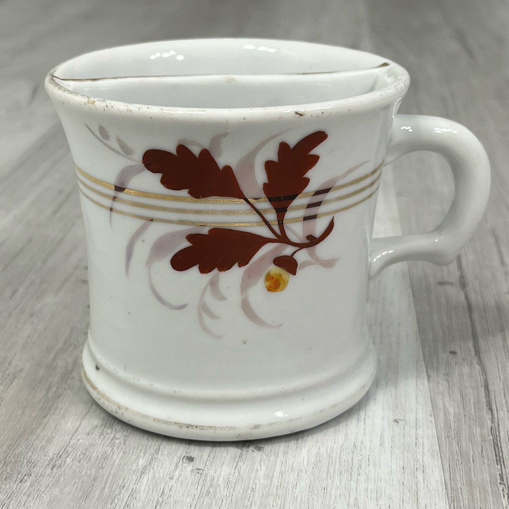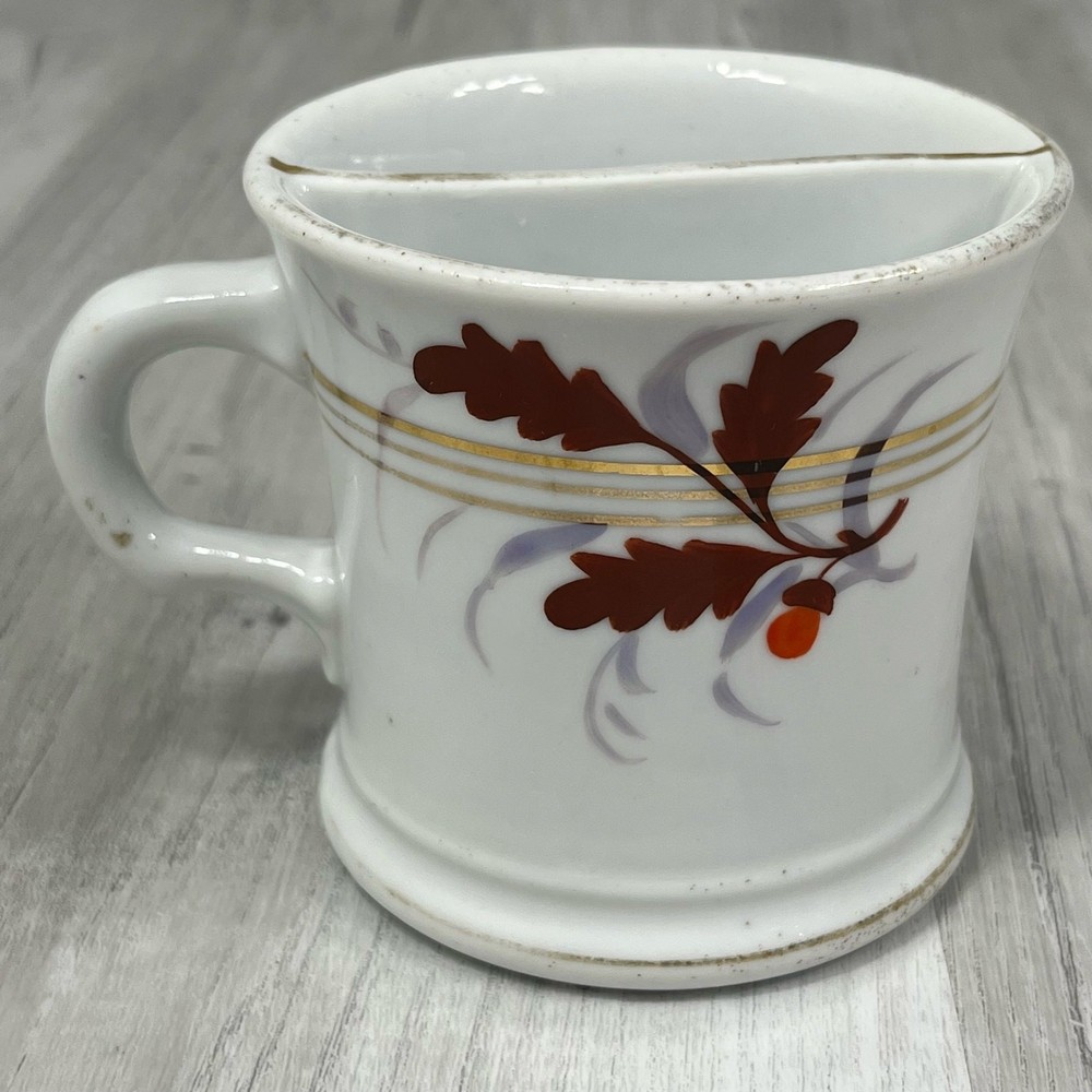 Antique Excelsior Hand Painted Porcelain Shaving Scuttle Mug with Oak Leaf Acorn Design