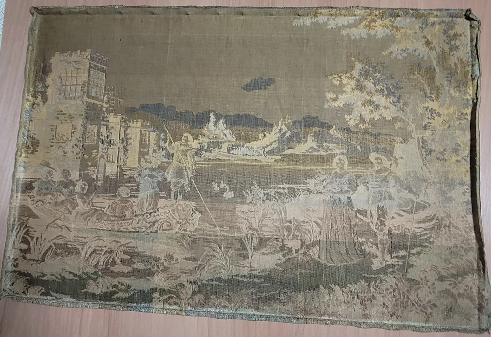 Well-Preserved Antique Unframed Tapestry Elegant High Society Members Some wear, see photos for more details I leave it to the buyer to have it professionally cleaned or leave as is.