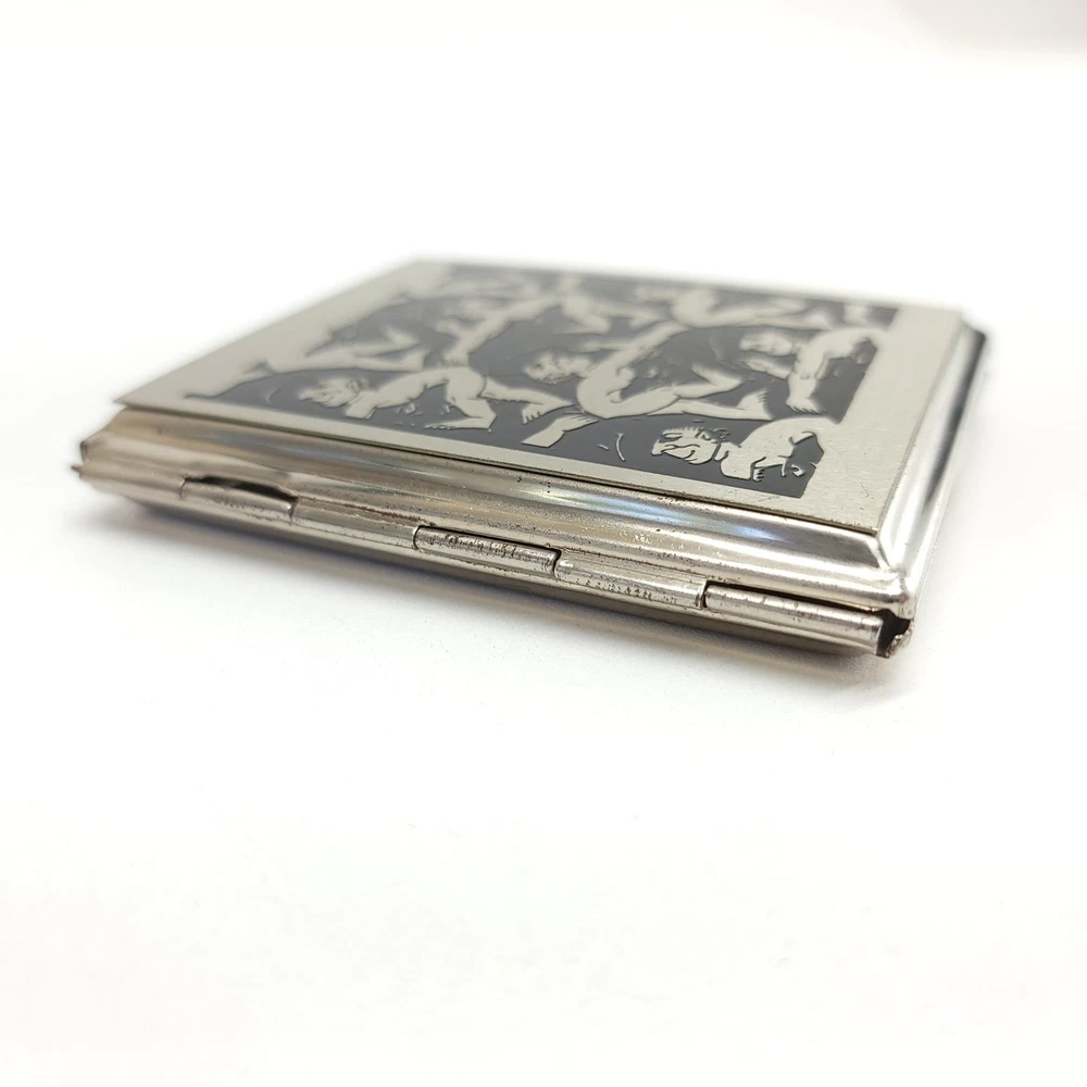 Antique German Made Cigarette Case. A symbol of Status and style. The case has a very intriguing repetitive image on the front. Very Esher esk and erotic. What a great gift this would make to right person.. The case measures 3.75" x 3.25" x .5"