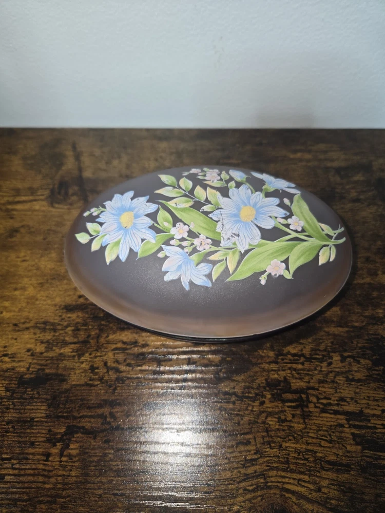 This exquisite trinket box is a must-have for collectors and admirers of Victorian style. The oval, hand-painted box is made of enamel, glass, and metal, with a beautiful floral pattern that exudes an antique charm. It is perfect for storing your precious jewels and keepsakes, and can be placed in any room to add a touch of elegance. The box is in excellent condition, with no signs of wear and tear. It is an original piece from the early 20th century, and comes with care instructions for cleaning with a damp cloth. This unique and rare item is a one-of-a-kind addition to any collection, and will surely catch the eye of anyone who sees it.