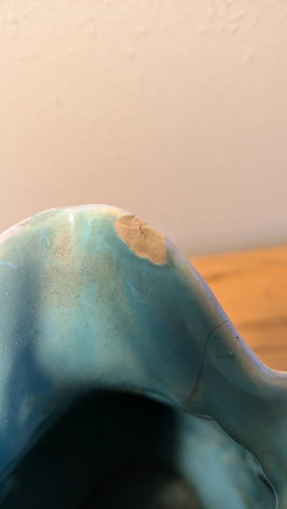 $ 94.52VTG Art Pottery Pitcher•6”•Blue Brown Glaze•Signed L. Vickery ‘87•.NC Stoneware
