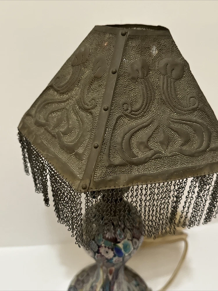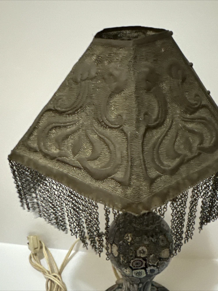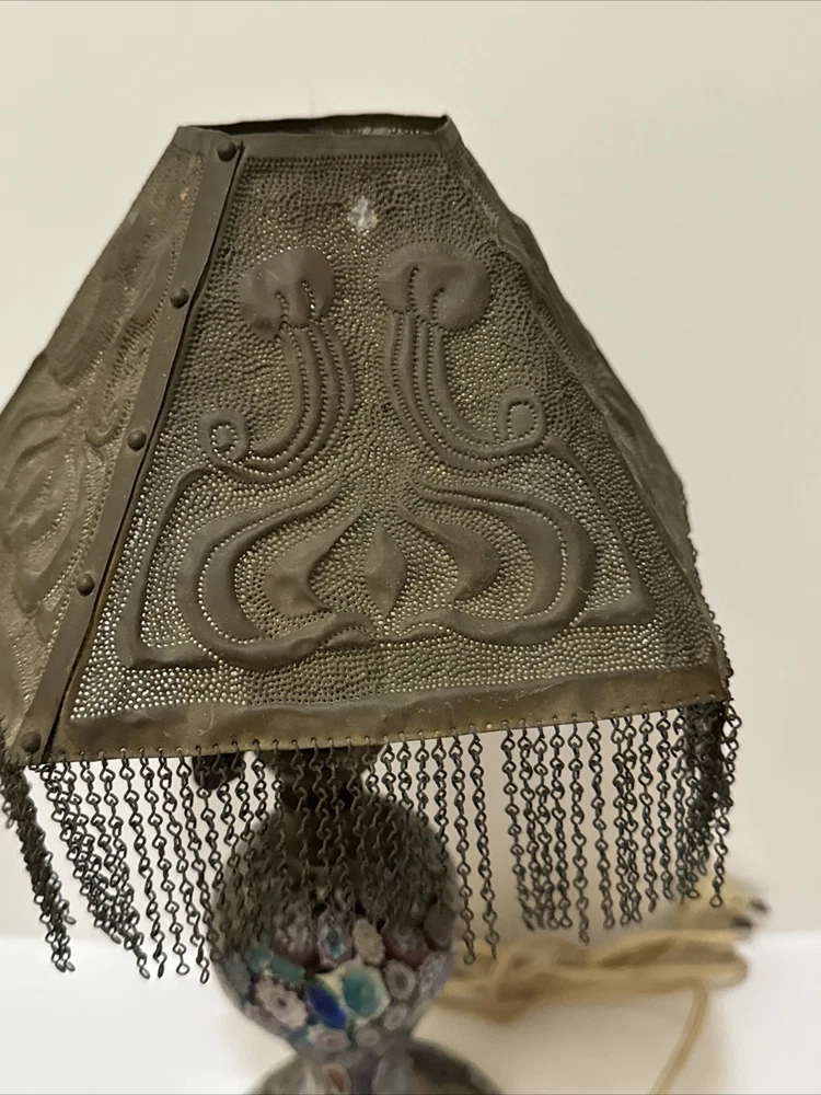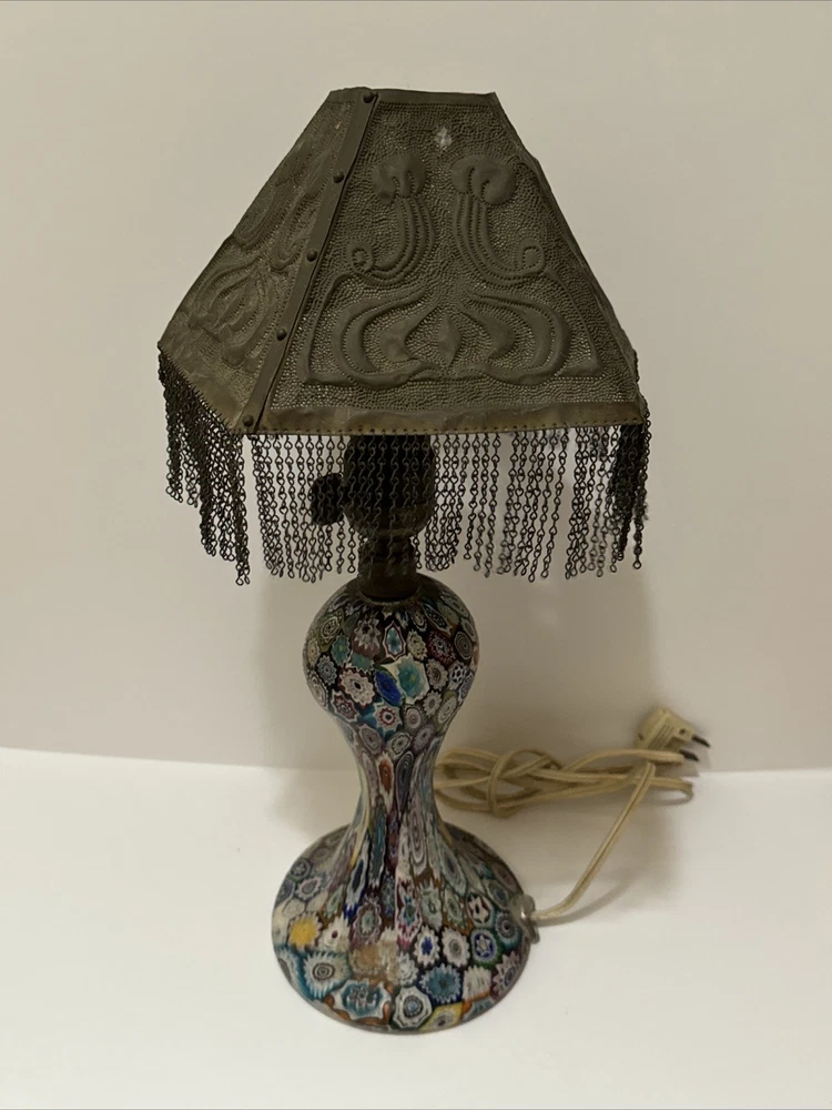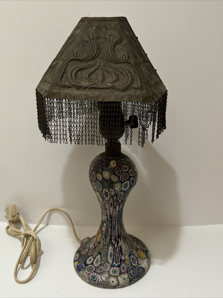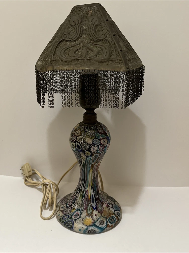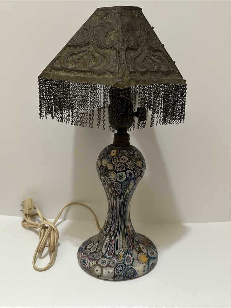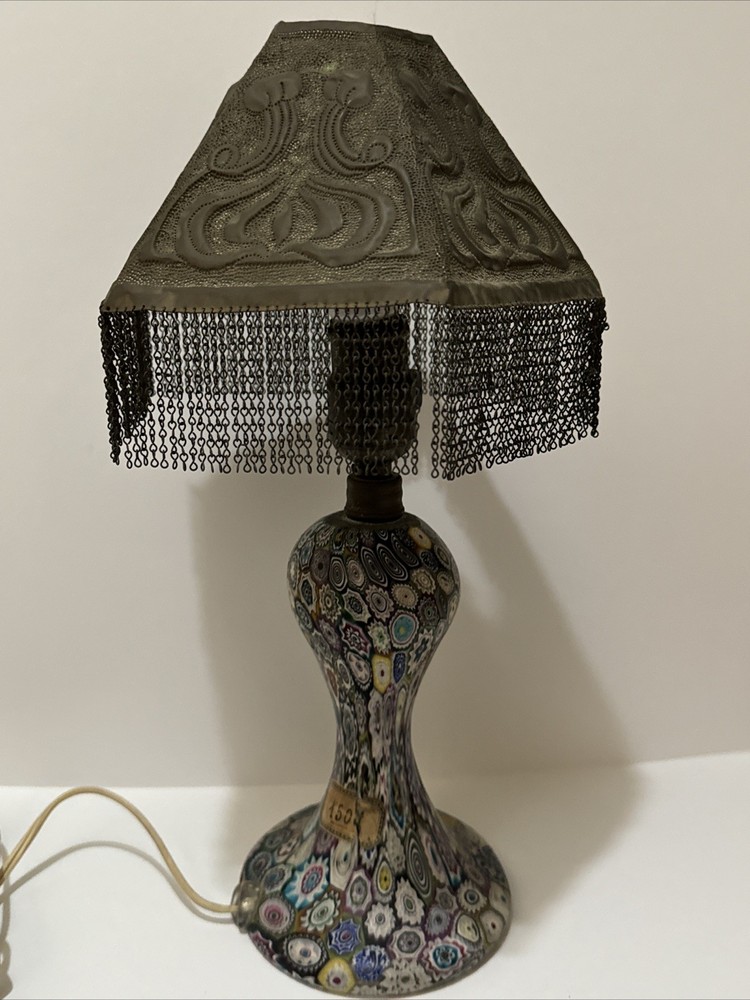 STILL HAS 2 PAPER LABELS ATTACHED. I FOUND THIS WITH THE SHADE SHOWN. SDHADE MISSING A FEW STRANDS. SHADE HAS DINGS AND WEAR. THE GLASS IS IN GREAT SHAPE. MEAURES 15.5 BY 8 INCHES WITH SHADE. GLASS ALONE IS 8 INCHES AND 5 INCHES AT THE BASE. (KC) THE SAMUELCOLLECTION I CONSIDER MYSELF AN ART PATRON. SEEKING OTHER PATRONS TO DO LONG TERM BUSINESS WITH. LIFETIME COLLECTOR/ARTIST/ ART AND ANTIQUES DEALER/ESTATE LIQUIDATOR TRAVIS SAMUEL. CALIFORNIA BASED. SAVE ME AS YOUR FAVORITE ART AND ANTIQUES DEALERS. NEW ITEMS DAILY. I BUY ESTATE COLLECTIONS. RANT PRICES ARE BASED ON AGE, QUALITY, AUCTION ANALYSIS, SUBJECT, CONDITION , OTHERS LIKE IT CURRENTLY FOR SALE, SHIPPING COSTS AND OTHER FACTORS. I CONSIDER HOW MUCH TIME EACH WORK OF ART TOOK TO MAKE. I MEASURE SKILL LEVEL. HOW LONG WOULD IT TAKE THE ARTIST TO MAKE IT. AND HOW MUCH TIME DID IT TAKE THE ARTIST TO GET THAT GOOD AT THEIR CRAFT. WHAT WOULD IT COST TO MAKE TODAY BY A PRO ARTIST ? THIS IS MY JOB AND A TRAVEL FAR TO GET EACH OF THESE THINGS. ALMOST NOWHERE TO BUY ITEMS LIKE THESE IN SAN DIEGO. NO SHOPS LEFT TO SHOP. I DO NOT AIM OR ASPIRE TO BE THE CHEAPEST ART DEALER IN THE HISTORY OF THIS BUSINESS. SOME ITEMS ARE OVERRICED BECAUSE I LOVE THEM. AND THAT IS THE COST TO PRY IT FROM MY HANDS. SOME ITEMS ARE UNDERCOST BECAUSE OF LACK OF RESEARCH. I AM A COLLECTOR. I BUY WHAT I THINK IS QUALITY AND TIMELESS. AUCTION RESULTS . I AM AWARE IF WHAT COULD HAVE BEEN BOUGHT....IN THE PAST. I ALSO UNDERSTAND IF THERE IS A SOLID CONSISTENCY TO AUCTION SALE. AUCTIONS RECORDS CAN MEAN SOMETHING OR NOTHING. BITCOIN ALSO ONCE WAS A DOLLAR. TODAY THIS ITEM IS FOR SALE AND ITS BEING OFFERED AND DISPLAYED CLEARLY. ALSO FREE SHIPPING IS CONSIDERED IN MY PRICE. RETURNS ARE ACCEPTED BY EBAY WITHIN 2 WEEKS. MORE THAN ONE RETURN MAY RESULTS IN PERMINENT BLOCK OF YOUR ACCOUNT. THIS CAN BE EASILY PREVENTED BY READING DESCRIPTIONS AND ASKING QUESTIONS IF YOU HAVE THEM. BE SURE YOU LOVE IT. RETURNS ARE FROWNED UPON. THEY ARE A WASTE OF TIME AND HIGH SHIPPING COSTS. MOST AVERAGE SIZE PACKAGES ARE 75-200 DOLLARS ONE WAY. LARGER PAINTINGS MAY COST ME 800 ONE WAY. I OFFER FREE SHIPPING IN THE U.S. I WRAP SAFE. SOMETIMES COLORS CAN DIFFER FROM YOUR SCREEN AND COLOR SETTINGS. EXPECT MILD DIFFERENCE . AS SHOWN MY FEEDBACK REPRESENTS SOLID BUSINESS. OVER 1 MILLION WORKS OF ART SOLD . ITEMS REPRESENTED TO THE BEST OF MY KNOWLEDGE. ITEMS CLEARLY SHOWN WITH ACCURATE PICTURES AND DESCRIPTION. RESTOCKING FEE A 30 PERCENT RESTOCKING FEE APPLISES TO ANY AND ALL RETURNS. IT IS NOT FREE FOR ME TO SHIP ITEMS. IT ALSO TAKES 10 MINUTES TO AN HOUR TO LOCATE EACH ITEM. THE RESTOCKING FEE IS A FAIR OUTCOME FOR A RETURNED ITEM. RETURNS CAN BE PREVENTED BY TAKING YOUR TIME WITH YOUR SHOPPING AND ASKING ANY QUESTIONS YOU MAY HAVE PRIOR TO MAKING AN OFFER. I RESPOND QUICKLY ACCOUNTS WILL BE BLOCKED FOR THE FOLLOWING REASONS . RUDE COMMENTS STORIES ON HOW YOU USED TO BUY SOMETHING CHEAPER IN THE PAST RETURNS UNPAID ITEMS WITH ME MULTIPLE BID RETRACTIONS FREQUENT UNNECESSARY COMMENTS. THIS IS MORE OF A BUSINESS THAN SOCIAL PLATFORM.