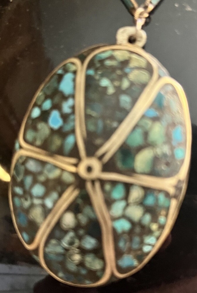 Antique Kashmir Green Blue Chip Turquoise Inlaid Necklace
