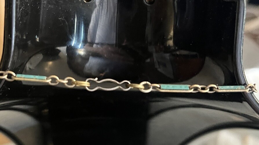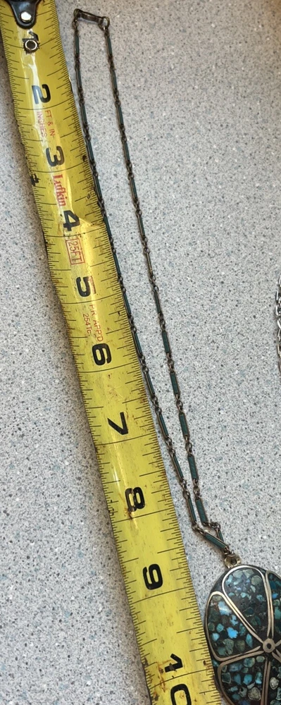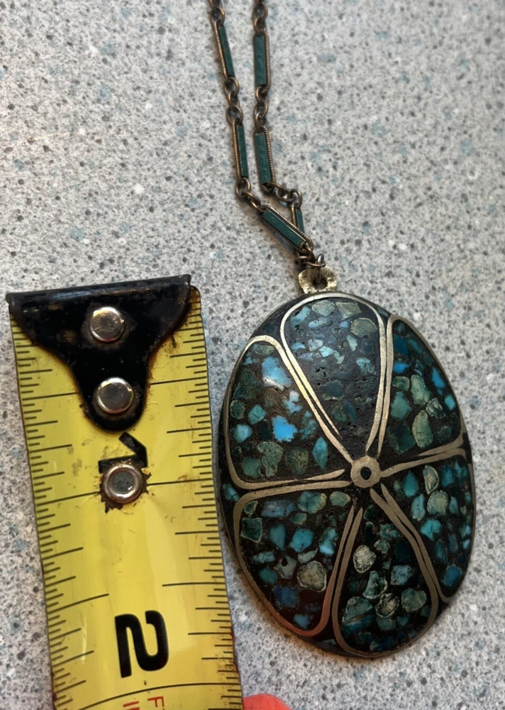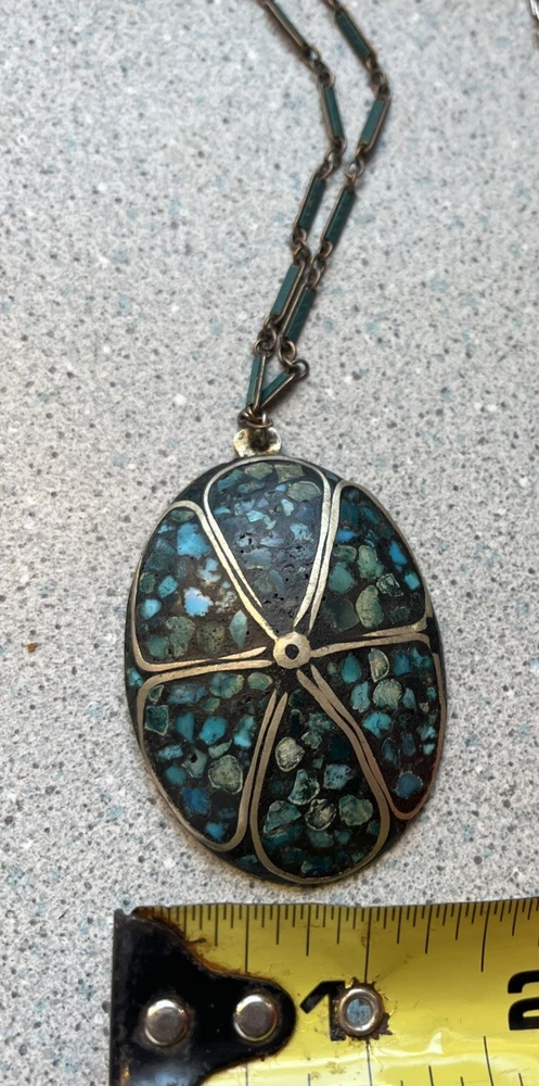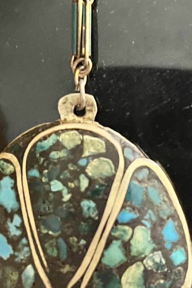 Vintage inlaid turquoise chip necklace. Vintage wear clasp works good . Any questions please ask . Thanks!
