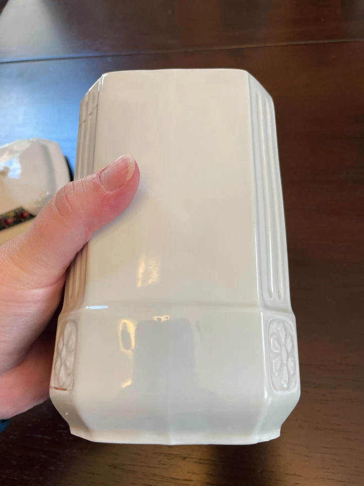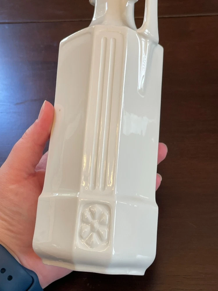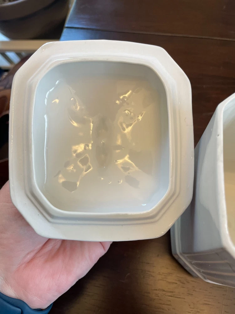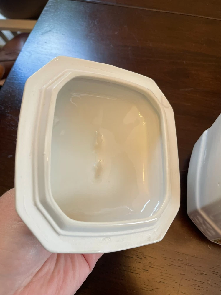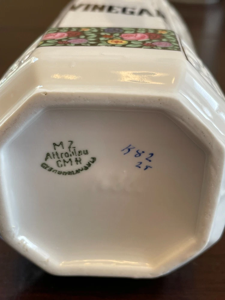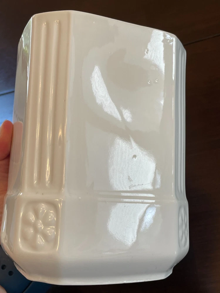 Good vintage condition. The coffee and tea jars are in very good shape. No cracks or issues with them. The vinegar jar is missing the stopper, and the rim has a large chip on the edge. There is also a faint cracking on the front. Please view photos for close ups of issues. Set is being sold as is, no refunds on these items. **Every item is examined thoroughly and description is to the best of ability. Unless grossly mis-represented, all items are sold in as is condition. All found defects will be noted in the listing and in photos to the best of my ability. Some items may have residual odors from closets, attics, etc. I will try my best to note any items that have an odor, but every persons sense of smell may be different. If you need additional size measurements, I will be happy to provide before purchase. Please ask any questions before bidding or purchasing, and ensure you are ok with my no return/refund policy. Will combine shipping. Thank you for viewing!