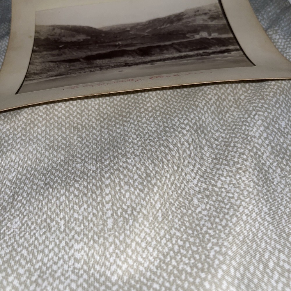 Matting is 8 x 6”. Edges are curled up, doesn’t lay flat. Matting is either a thick paper or a very thin cardboard (not corrugated). Small tack holes in the corners. Writing as pictured. Old! Wear commensurate to age, including, perhaps, stains, fading, minor rips, dings, fraying, old smells, and other imperfections, etc.