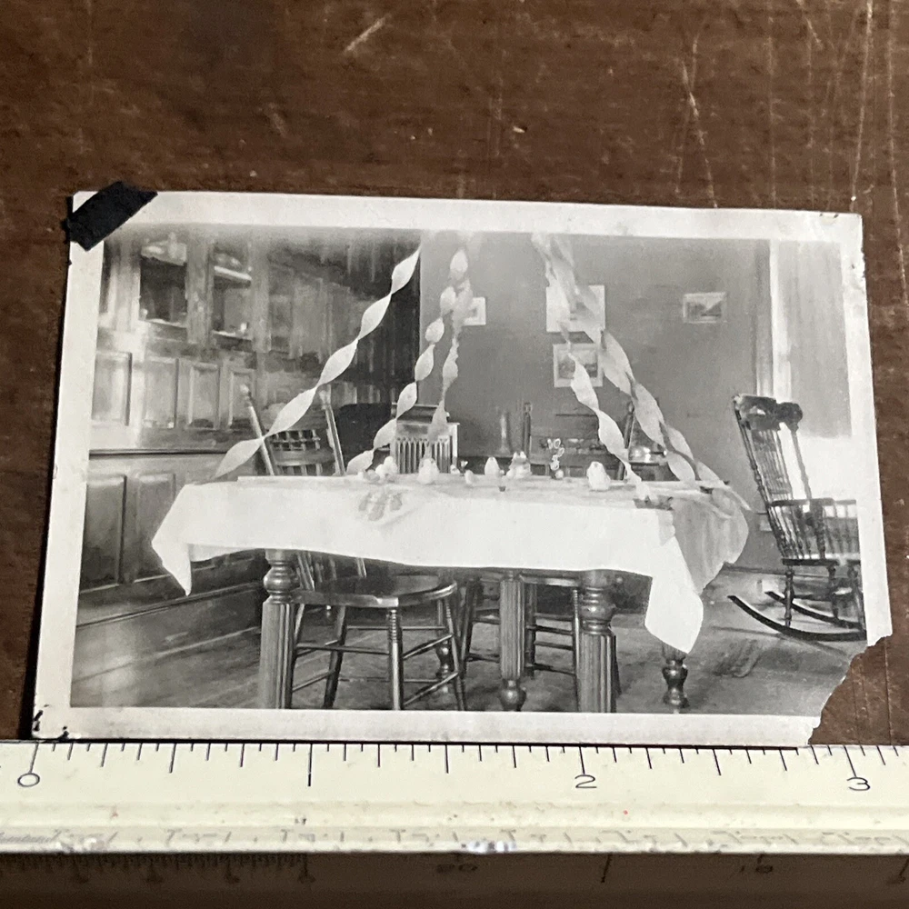 Antique Photograph Easter Rabbits & Chicks Fancy Dinner Table Circa 1920s - D1