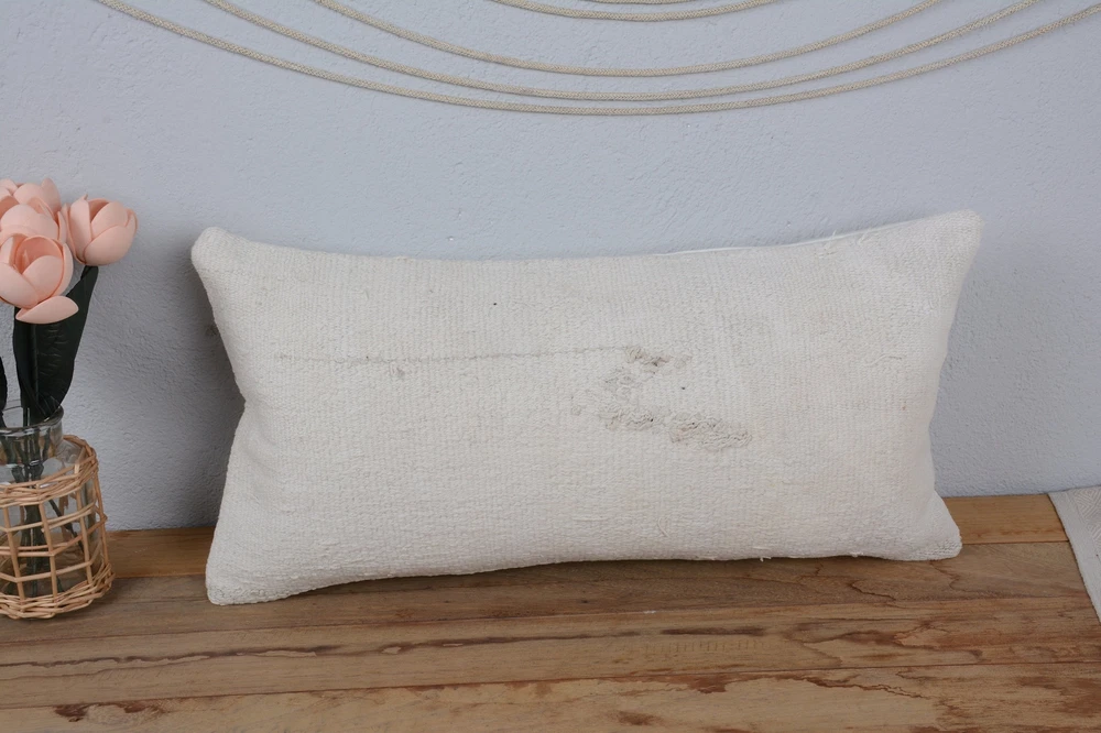 Antique Pillows, 12"x24" White Pillow Cover, Kilim Pillow Cover