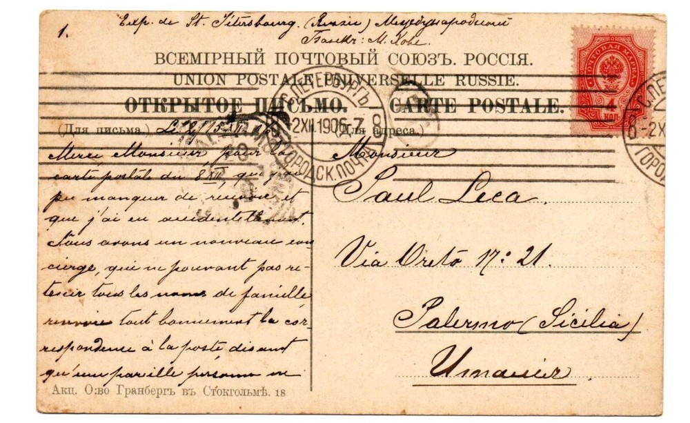 Material:CardboardTheme:Aerial View, Architecture, Countries, Cultures & Ethnicities, GreetingsPostage Condition:PostedSubject:Palace MonumentSize:Standard (5.5 x 3.5 in)Original/Licensed Reprint:OriginalType:Printed (Lithograph)Time Period Manufactured:1900-1919Occasion:Best WishesYear Manufactured:1906Era:Divided Back (1907-1915)Unit of Sale:Single UnitCountry of Origin:Russian FederationFeatures:Divided Back