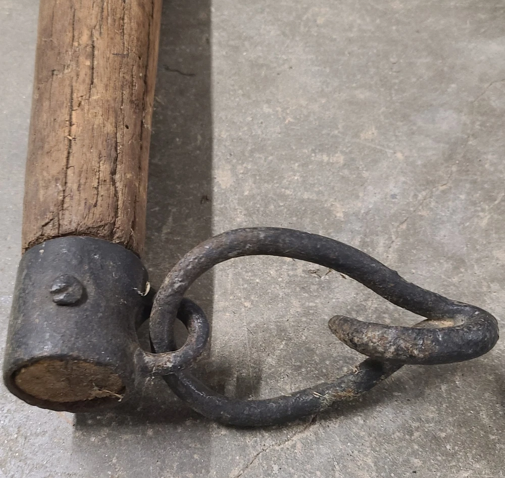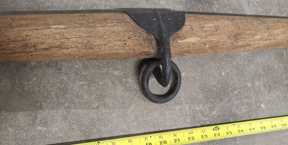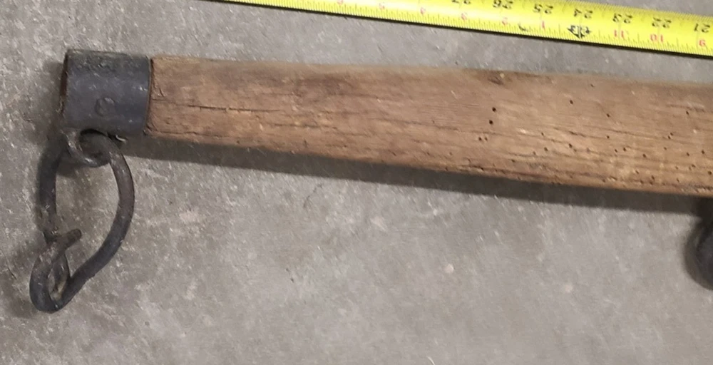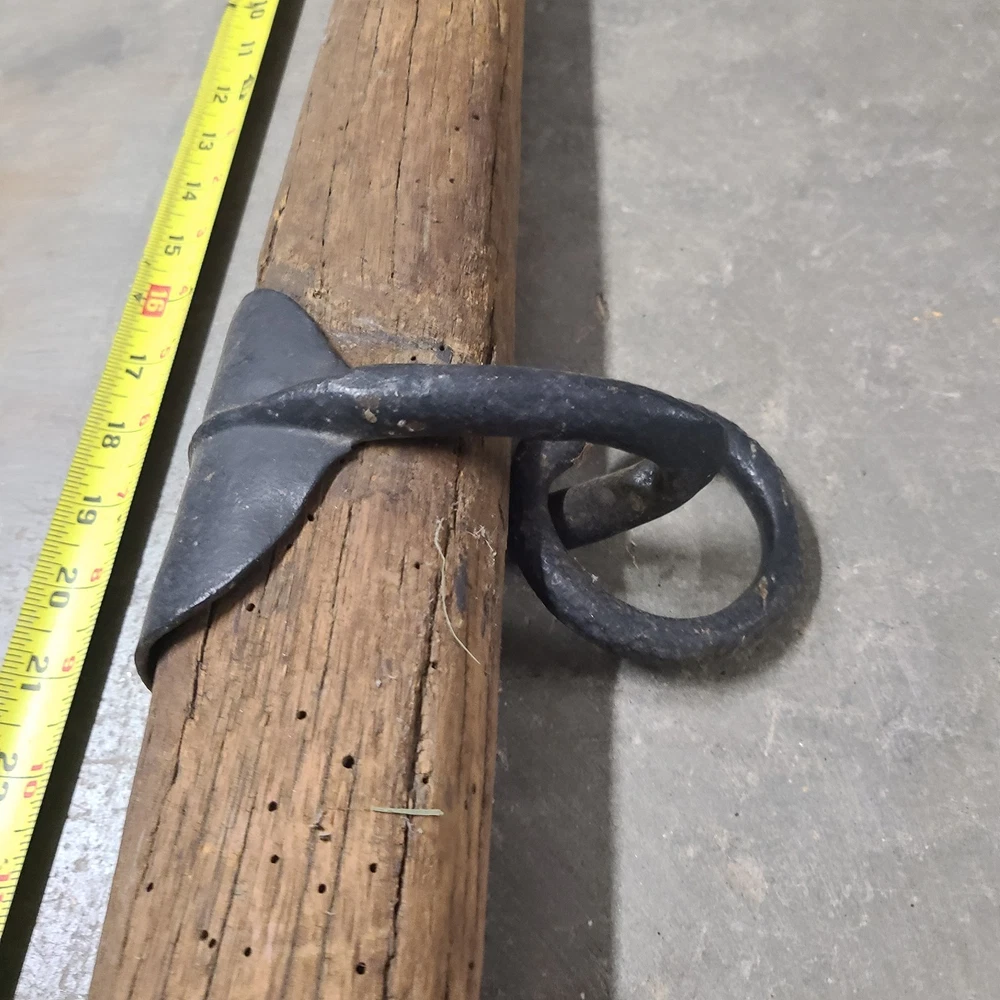 This is for a Antique Primitive Wood Cast Iron OX HORSE FARM Yoke Single Tree 36" Barn County. This is a well made yoke with iron end caps each with tear drop shape rings with hook's(see pictures) and a 3" ring in the center. The over all length is about 36" long and it's about 3" thick. This is very solid in great condition for it's age. Thanks for looking!