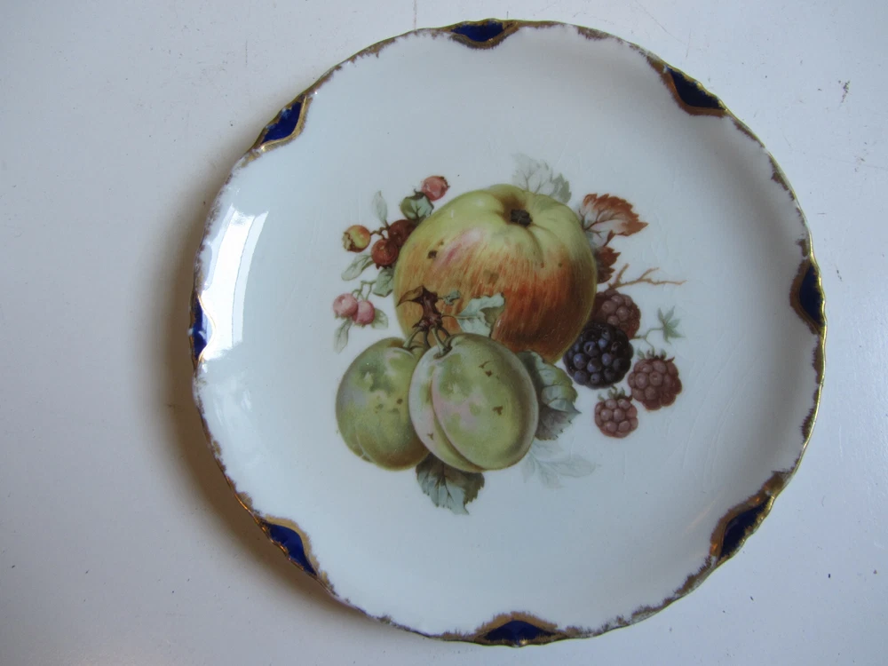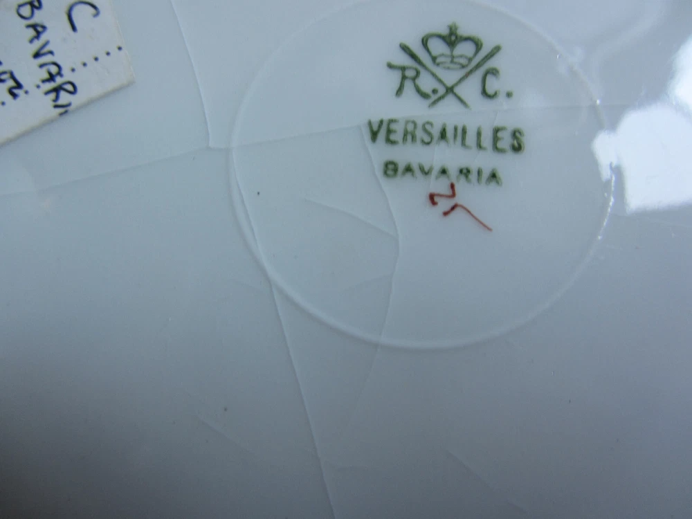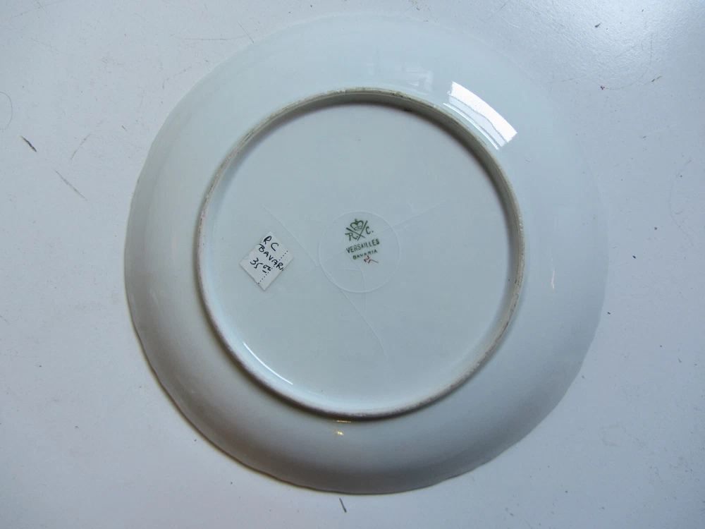 Add a touch of elegance to your dining table with this antique Rosenthal RC Versailles plate. The round porcelain plate features a beautiful hand-decorated fruit panorama in multicolor, with gold gilt accents that give it a Victorian style. This plate is from Bavaria, Germany, and was manufactured in the year 1900, making it a valuable vintage piece. The plate is an original production of the Rosenthal brand and has a glossy finish. It is art pottery and was made using pottery production techniques. The backstamp is printed and the plate is handmade. This decorative piece is perfect for serving fruits or any other dish, and will surely impress your guests.