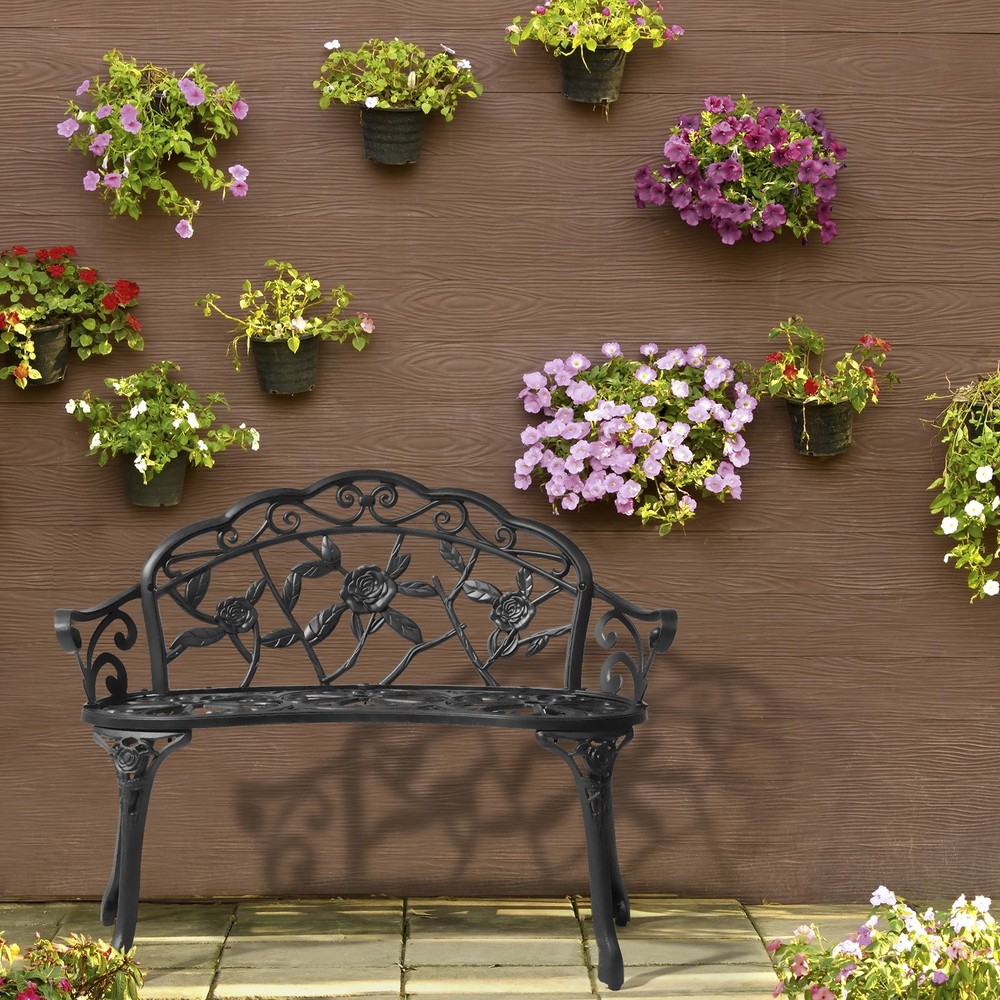 38.5-inch Durable Cast Aluminum Park Bench for Patio or Garden