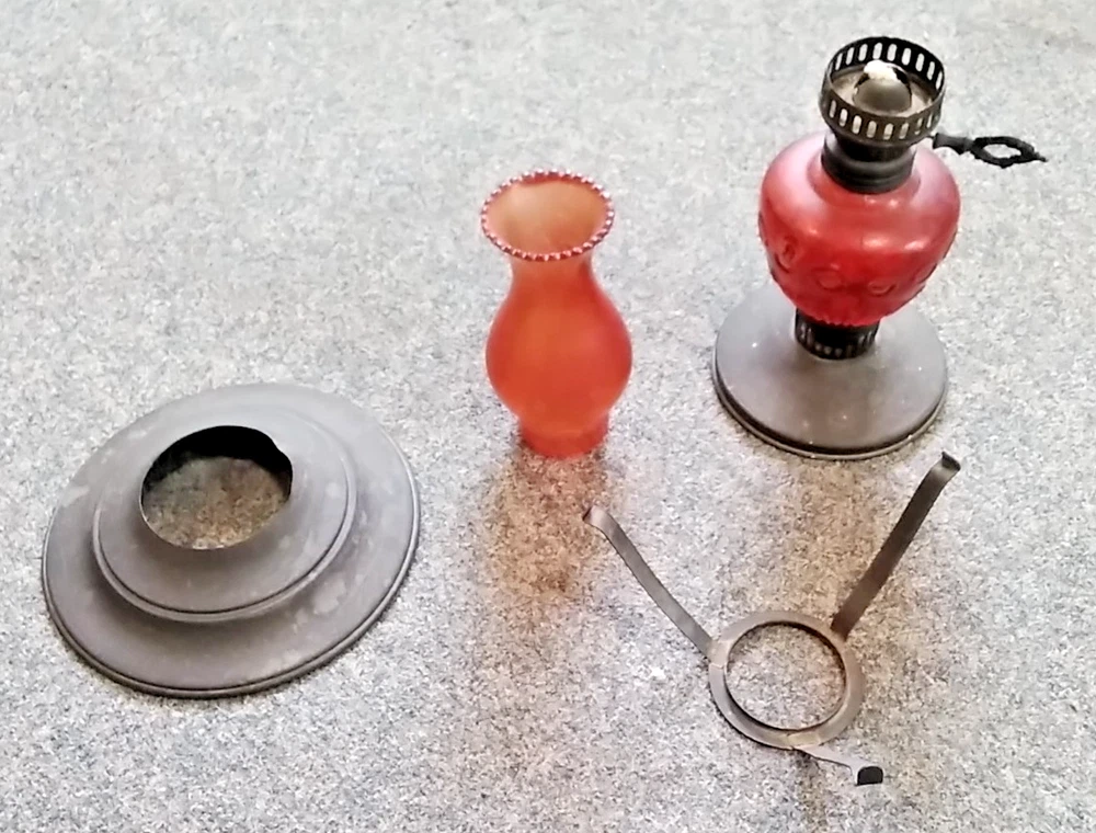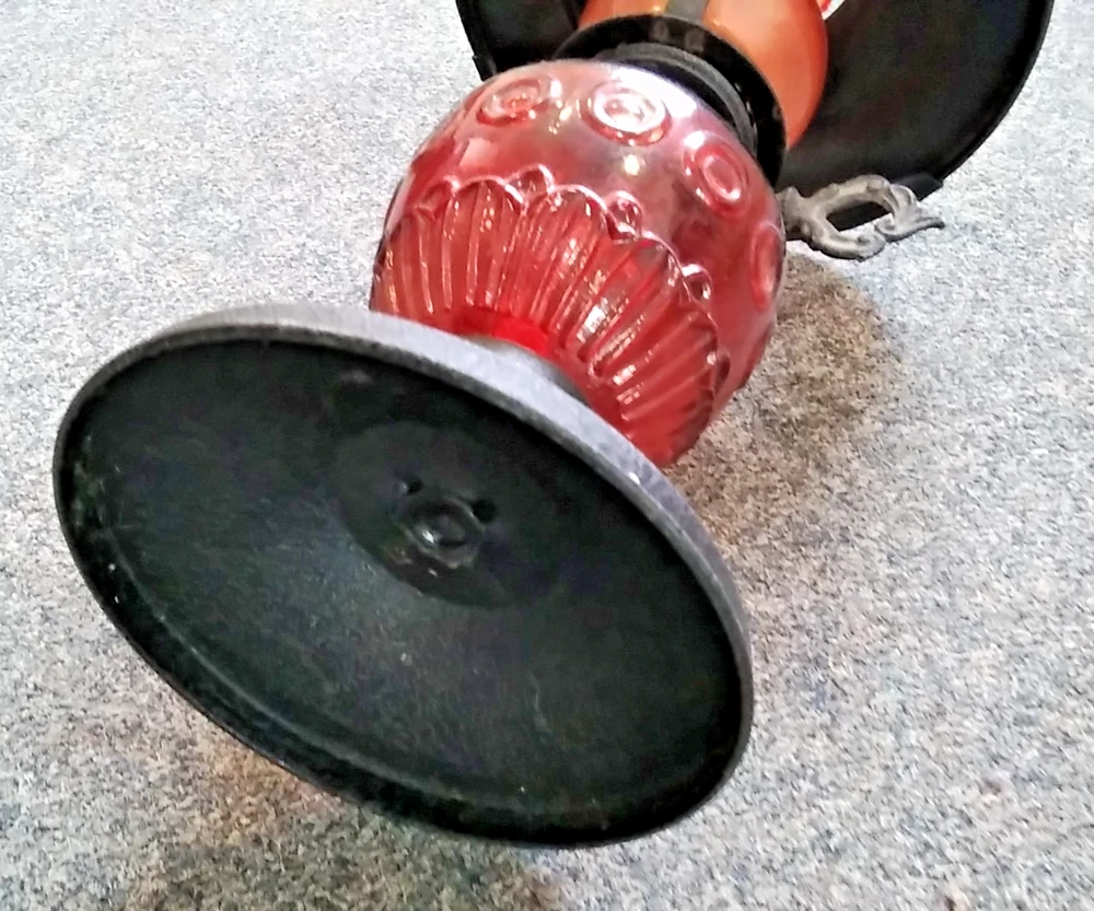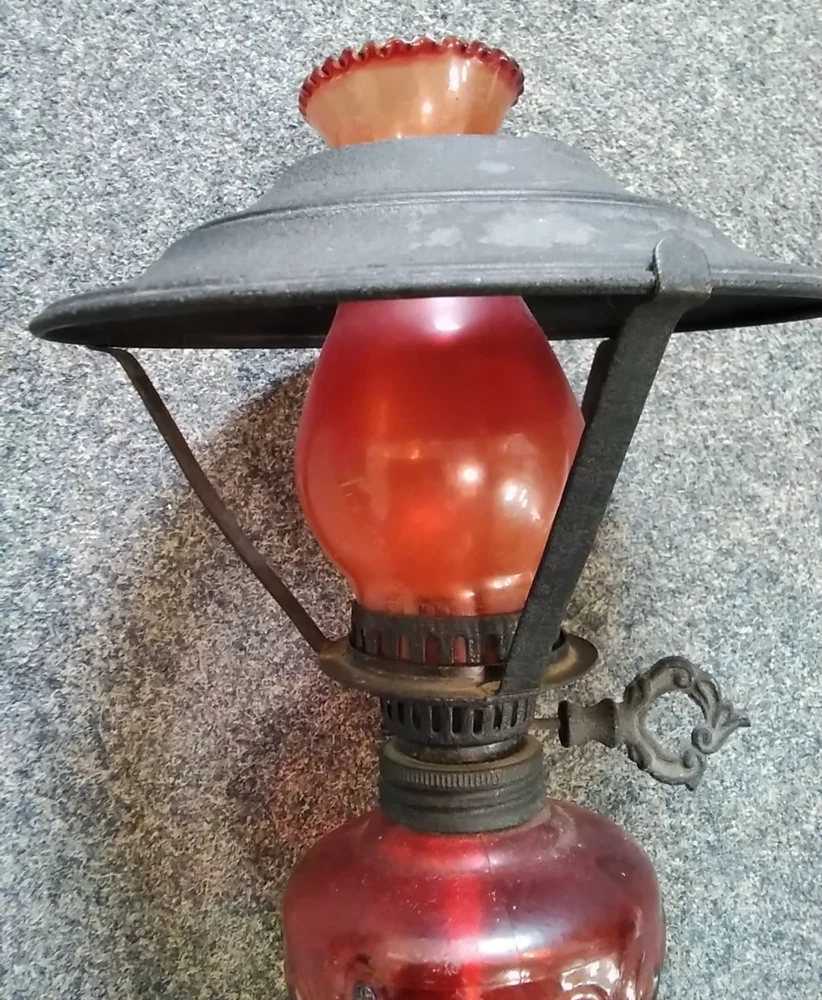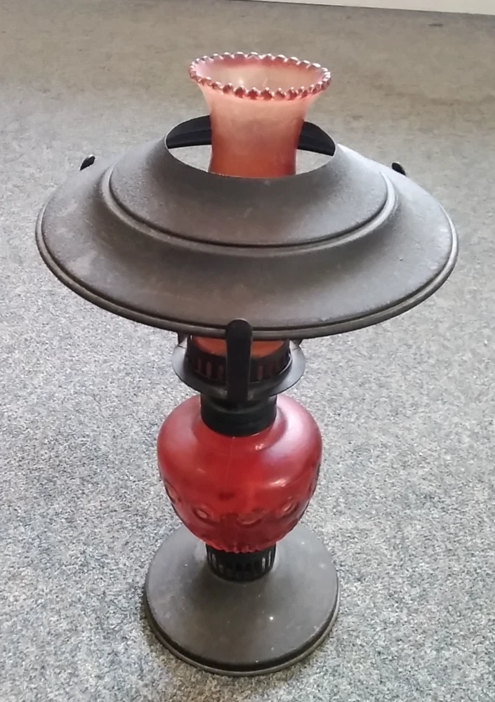 Antique Ruby Red Glass Oil Lamp Lantern Early antique/late vintage style Adjustable wick length Ruby red glass bulb and bottle Pressed and black steel finish shade Increasingly rare and stylish just for atmospheric display N.B.: this has not been tested for lamp use and is being sold as a decorative item 27 cm Tall X 16 cm Diameter Used with indications of previous ownership and could do with a clean but generally good condition - please see the Photographs - All money raised from the sale of this item, helps fund East Anglia's Children's Hospices East Anglia's Children's Hospices (EACH) is a charity which supports families, and cares for children and young people with life threatening conditions across Cambridgeshire, Essex, Norfolk and Suffolk. Thank you for bidding and supporting our cause! - Q&A Q. Do you ship internationally? Yes, we use eBay's Global Shipping Programme for all international postage. Q. Do you accept offers? We do not accept any offers on our auction listings. Q. How long do I have to pay for my order? We allow 7 days for customers to pay for orders. Q. What is the dispatch time? We aim to dispatch orders within 3 working days of payment received. Q. Can you hold onto my order? No, once an order is paid for, we are unable to hold off dispatch. Q. Do you combine postage? Yes, we offer combined postage for all UK buyers. Please get in touch with us before making payment, and pay for the oldest ended auction within 7 days. Gift Aid Our auction items may be sold under the Gift Aid scheme. In such circumstances EACH is acting as an agent in selling these goods on behalf of the Gift Aid donor.
