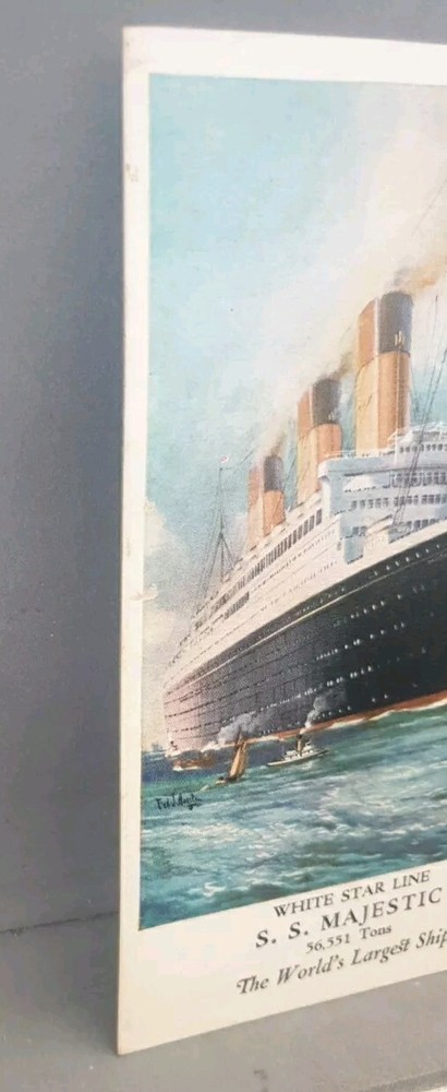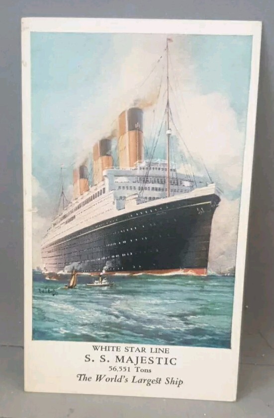 Antique SS Majestic White Star Line Chrono Lithograph Postcard World Largest Ship Excellent Condition