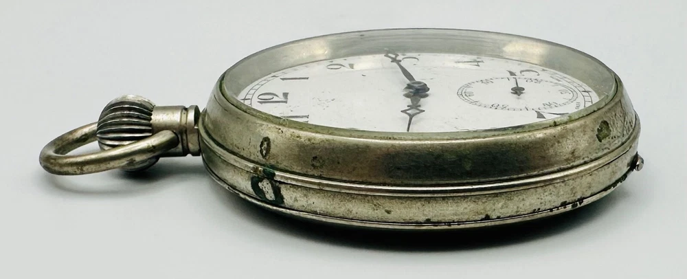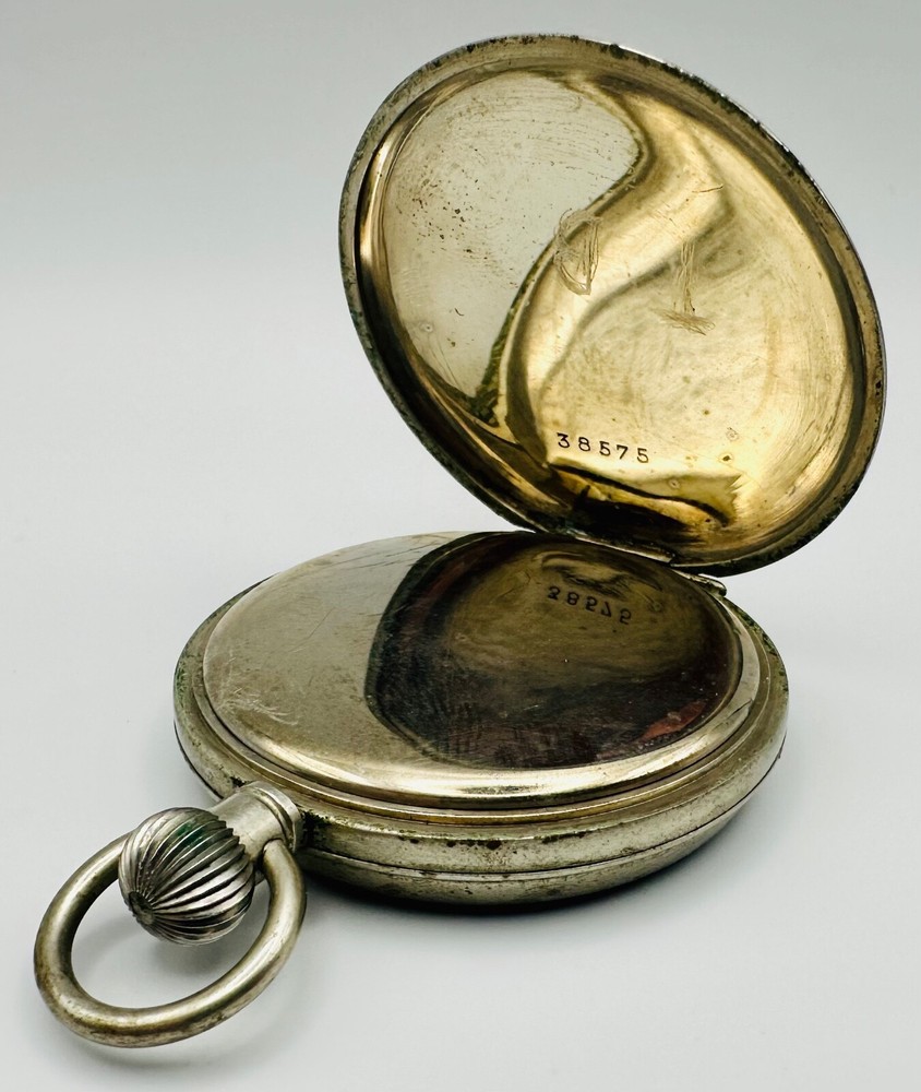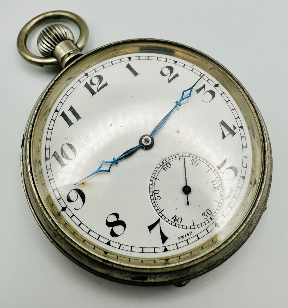 Antique Swiss Made 15 Jewel Pocket Watch - Working Discover a charming antique Swiss-made pocket watch, perfect for collectors of vintage timepieces. This watch features a reliable 15-jewel Swiss mechanical movement , which is stem wound and is currently in working condition , winding and ticking along nicely. The watch presents a classic white dial with clear Arabic numerals and a functional sub-seconds dial at the 6 o'clock position. The case is made of a durable white metal , offering a timeless antique aesthetic. This is a wonderful opportunity to own a piece of horological history, ideal for display or daily use for those who appreciate antique craftsmanship. Key Features: Swiss Made Movement: Features a 15-jewel Swiss mechanical movement. Working Condition: The watch is fully functional, winding and ticking nicely. Stem Wound: A traditional and desirable winding mechanism. Classic Design: White dial with Arabic numerals and a sub-seconds hand. White Metal Case: Robust and durable, with a classic antique appearance. Generous Size: Measures 49.7mm in case diameter. Condition: This antique pocket watch is in good working condition for its age. The white metal case exhibits some tarnishing and general surface wear, consistent with an item of this vintage. Please note that the rear case lid has been initialled , adding a unique touch of personal history to the piece. The dial appears clean and legible. Please examine the detailed photographs carefully, as they form an integral part of the description and best illustrate the item's exact condition. Markings: Movement: "15 JEWELS SWISS MADE" Dial: "SWISS MADE" Inner Case: "38575" Rear Case: Has been initialled Dimensions: Case Diameter: 49.7mm (approximately 1.96 inches). Add this charming antique Swiss pocket watch to your collection today! As usual, this item will be packaged carefully and dispatched with tracking. International shipping is available upon request.