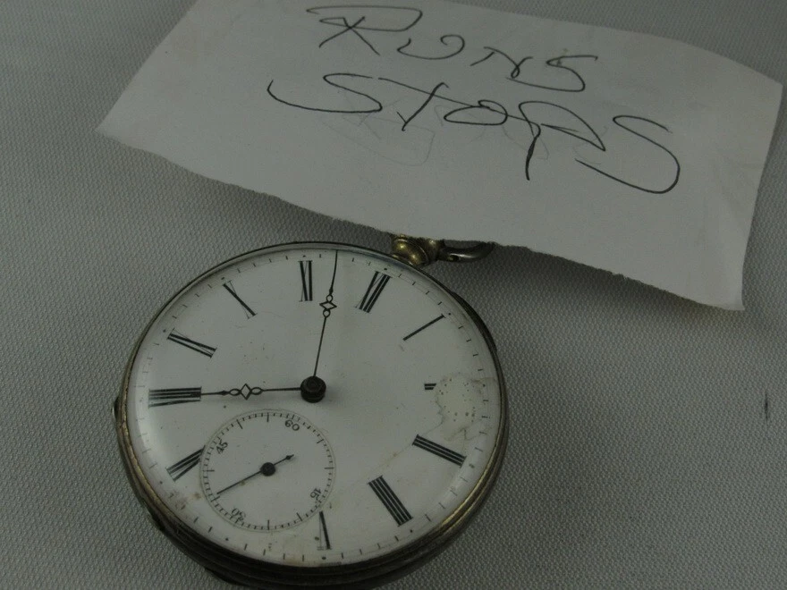ANTIQUE SWISS OPEN FACE POCKET WATCH .800 SILVER CASE KEY WIND RUNS STOPS CASE NOT MARKED BUT TESTED TO BE .800 SILVER THE ITEMS WE SELL ARE "AS FOUND". I DO NOT CLEAN NOR ATTEMPT TO RESTORE ANY OF THE PIECES. MANY BUYERS WANT THE ITEMS THEY PURCHASE TO BE IN ORIGINAL CONDITION. I TRY TO RESPECT THAT. WE DO OUR BEST TO PROVIDE DETAILED PHOTOS AND ACCURATE DESCRIPTIONS OF ALL ITEMS LISTED FOR SALE. VINTAGE PIECES ARE NOT PERFECT AND SOMETIMES HAVE IMPERFECTIONS SUCH AS TARNISHING, WEAR TO LUSTER, MINOR SCUFFING OR SCRATCHING AND SLIGHT OXIDATION. AS WITH ALL PRE-OWNED ITEMS SOME SIGNS OF WEAR SHOULD BE EXPECTED. PLEASE LOOK CAREFULLY AT ALL PICTURES AS THIS IS THE BEST REPRESENTATION OF THE CONDITION OF MY ITEMS PHOTOGRAPHS PROVIDE THE BEST AND MOST ACCURATE DESCRIPTION OF THE ITEM AND SUPERCEDES ANY WRITTEN DESCRIPTION. LOOK AT ALL PICTURES CAREFULLY. ANY ADDITIONAL INFORMATION CONCERNING THE TRUE AGE, ORIGIN, OR IDENTIFICATION OF AN ITEM IS GREATLY APPRECIATED AND WILL BE ADDED TO THE LISTING. THIS IS A RARE OPPORTUNITY FOR YOUR USE OR COLLECTIONS. SOMETIMES WE MISS SOMETHING. PLEASE NOTIFY US IF YOU SEE ANY INACCURACY WE WILL ADDRESS THE SITUATION RIGHT AWAY. WE CARE ABOUT OUR CUSTOMERS...MAKING SURE THAT OUR CUSTOMERS FIND EXACTLY WHAT THEY WANT. WE TAKE OUR CLIENT?S FEEDBACK SERIOUSLY AND WILL STRIVE TO ADDRESS THE NEEDS OF ALL CUSTOMERS. HOWEVER, SOMETIMES A PRODUCT FAILS TO MEET EXPECTATIONS. AS A MARKET PLACE PLATFORM WE WILL ADDRESS ANY ISSUES AS SOON AS POSSIBLE. WE ARE ALWAYS READY TO HEAR FROM YOU. THE EBAY ESTIMATED SHIPPING COST SHOWN IS FREQUENTLY INCORRECT. I WILL SHIP THE CHEAPEST and BEST. I CANNOT DETERMINE THAT UNTIL AFTER THE AUCTION. MOST OF THE ITEMS I SELL HAVE RECENTLY BEEN PURCHASED AT AUCTIONS OR ESTATE SALE....THUS I OFTEN AM RELYING ON INFORMATION RECEIVED FROM THE SELLER....SO BID ACCORDINGLY. BUYER CERTIFIES THEY ARE 18YRS OF AGE OR OLDER TO BID, BUY, LEGAL TO OWN AND POSSESS IN YOUR AREA, BUYER CERTIFIES THEY ARE IN COMPLIANCE WITH ALL FEDERAL, STATE, & LOCAL LAWS PERTAINING TO SHIPPING OF THIS ITEM TO YOUR LOCATION, NO GUARANTEE/WARRANTY IS IMPLIED TO THE USE OF THIS ITEM, BUYER ACCEPTS/ASSUMES ALL RESPONSIBILITY/RISKS/LIABILITY IN THE USE OF THIS ITEM ****** IF YOU HAVE ANY PROBLEMS WITH THIS LISTING, SHIPPING COSTS, DESCRIPTIONS, COMMUNICATIONS, ETC. PLEASE CONTACT ME SO THAT I CAN CORRECT THE PROBLEM, CHECK MY FEEDBACK. YOU WILL RECEIVE THE EXACT ITEM PICTURED. I WILL COMBINE MULTIPLE ITEMS WHEN PACKING THEM WHEN POSSIBLE. ITEM WILL SHIP FROM 65804 THANK YOU FOR LOOKING. GOOD LUCK BIDDING.