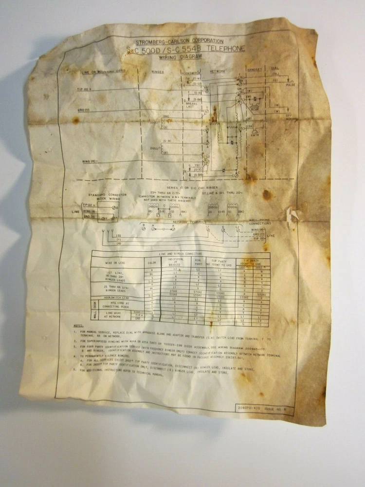 Wiring Diagram. Stromberg-Carlson Telephone. Models 500D and 554B, rotary dial home units. 1970. Thank you.