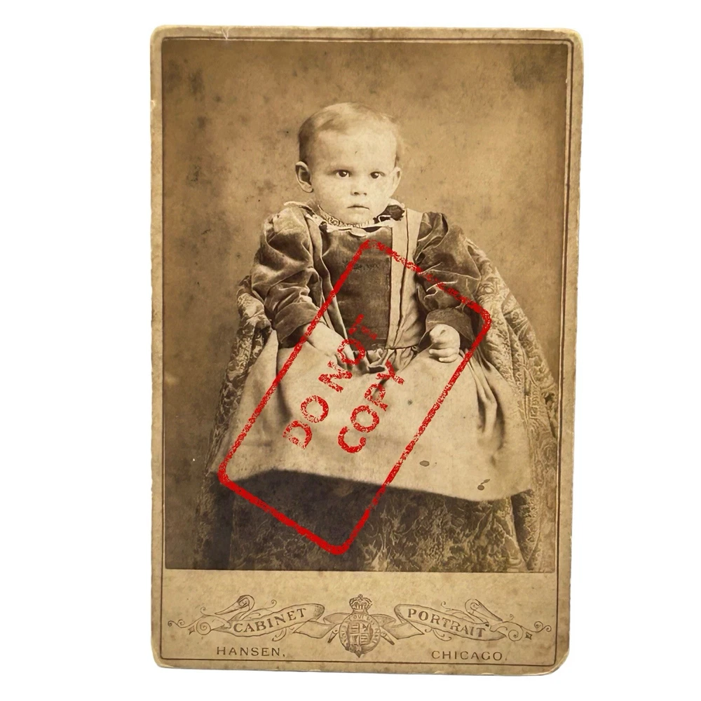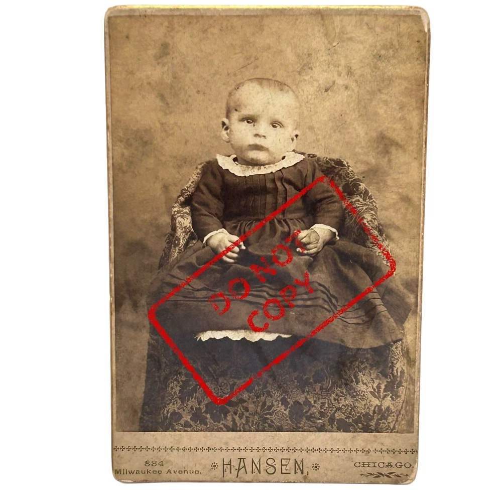 Antique Victorian Cabinet Card Photo Portrait Two Babies Children 1880s Chicago TWO ITEMS Two lovely cabinet cards of children made at the studio of Warren R. Hansen in Chicago and seems to be dated 1888. Looks like relatives were writing on the back to identify. “Do not Copy” stamp not on photos. Items sold as is. Please see all images for further details. Be sure to see all our other items for possible bundle and shopping deals! Will pack with extra care and attention that ephemera items require. Quick shipping guaranteed. Returns accepted at buyer’s expense. Display boxes and props not included unless otherwise noted. Own this lovely pair! We are a reputable seller! Check out our reviews to see what customers say about our products and service. You won’t regret trusting Fairfield for your online purchase.