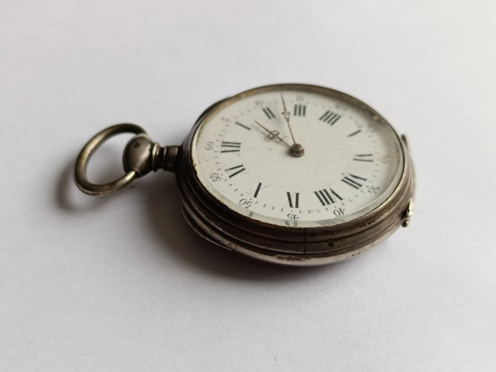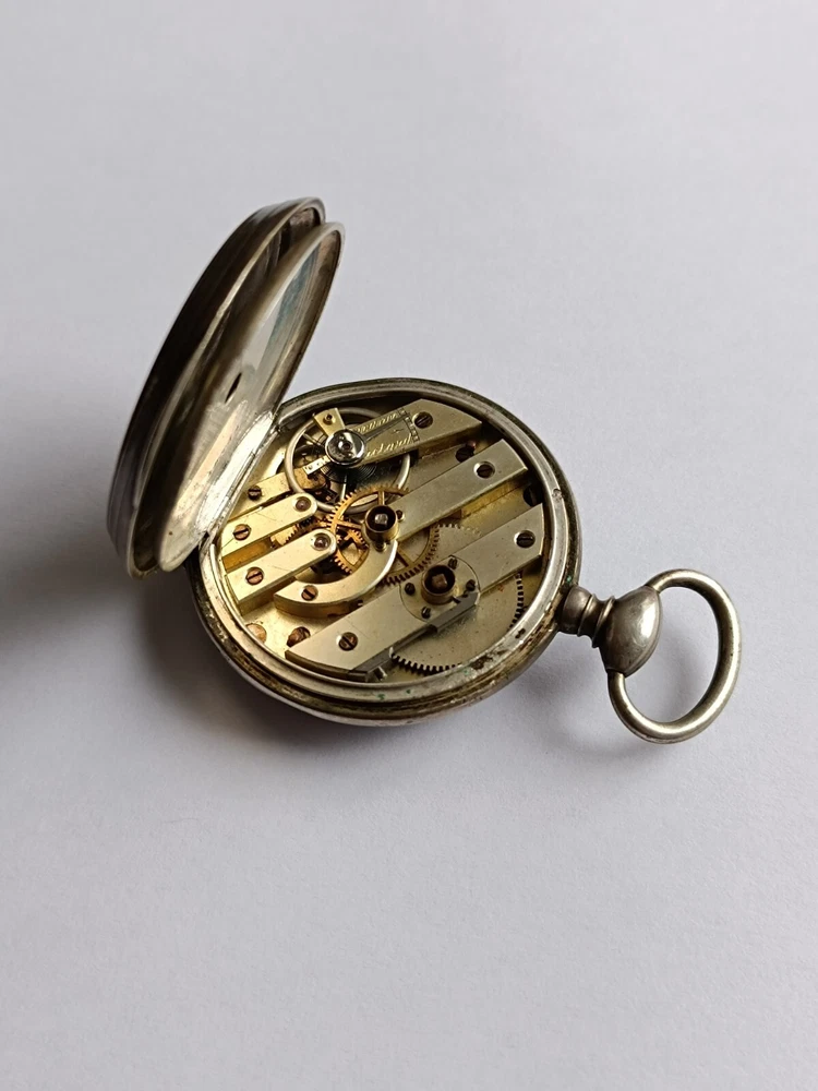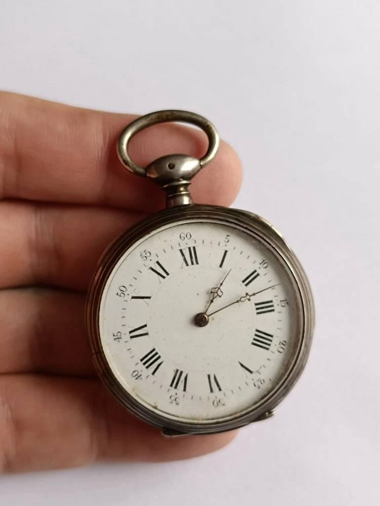 Antique French silver pocket watch, 45mm, hallmarked with the French Crab mark. Features a Cylindre movement with 10 rubis, finely engraved case, and a Roman numeral dial with original hands. The mechanism needs servicing. Doesn't work. A rare and collectible piece. antique pocket watch, silver pocket watch, vintage pocket watch, French watch, Cylindre movement, 10 rubis watch, hallmarked silver, collectible pocket watch, Roman numeral dial, Art Nouveau watch, Victorian watch, French antique, rare pocket watch, silver timepiece, manual wind watch, hand-engraved watch, pocket chronometer, 19th century watch, steampunk watch, silver fob watch…
