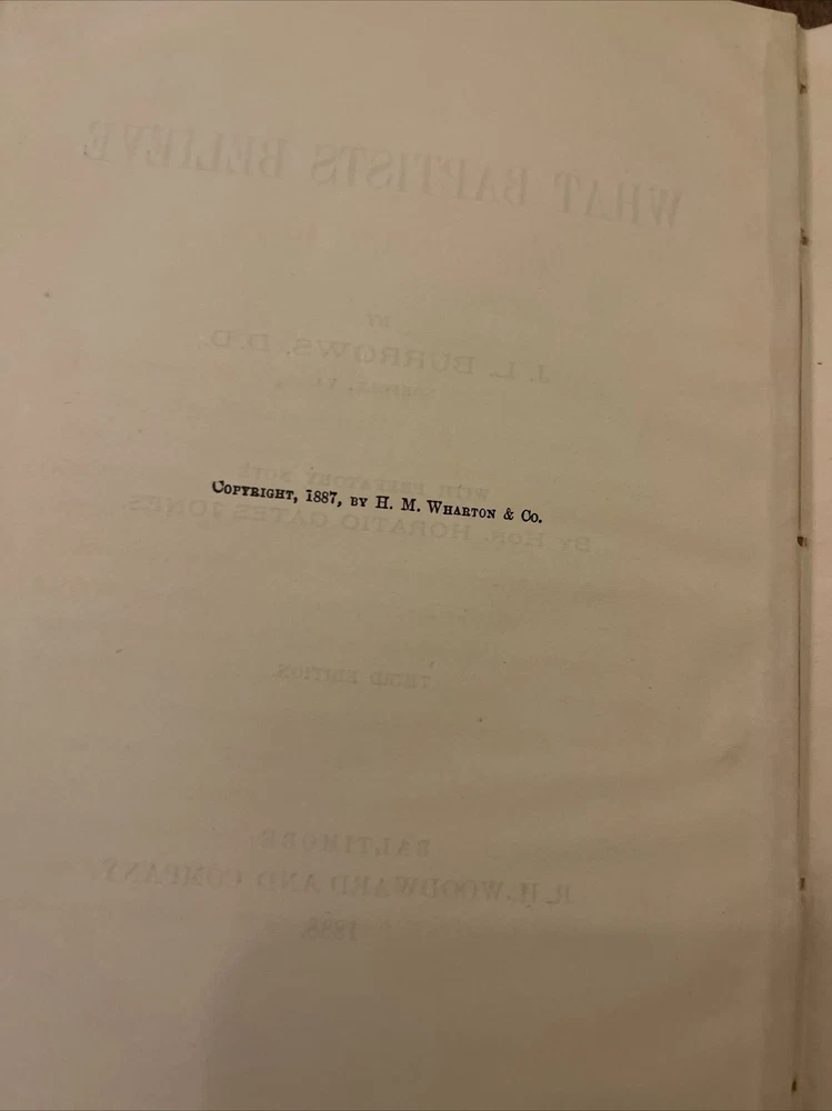 Genre: Religious & Spiritual Author: JL Burrows Publisher: RH Woodward And Company Topic: Baptists, Religion Vintage: Yes Edition: Third Edition Format: Hardcover Book Title: What Baptists Believe Language: English Publication Year: 1888 Country/Region of Manufacture: United States