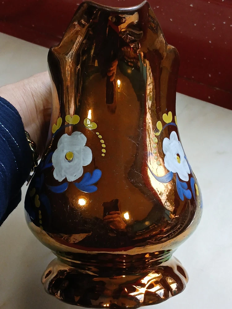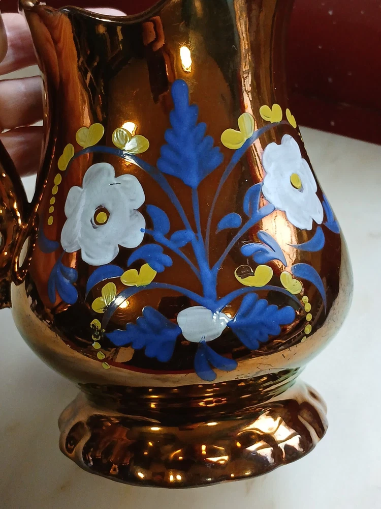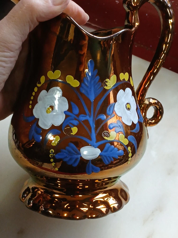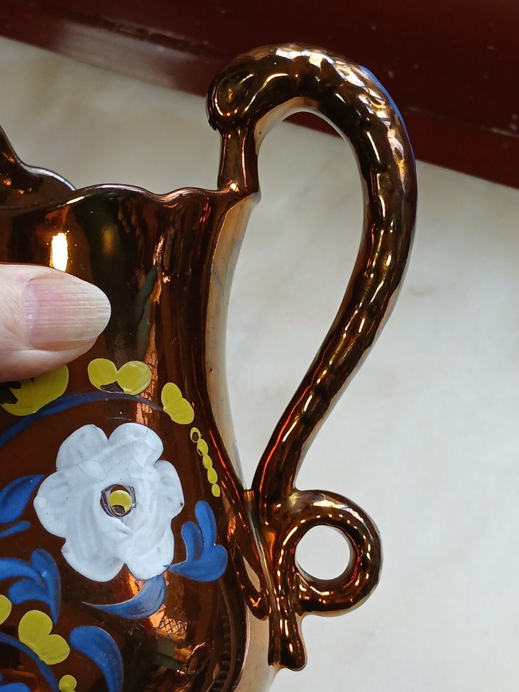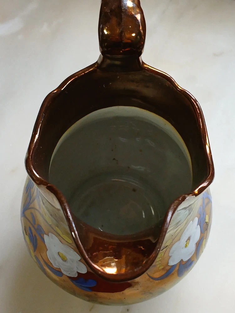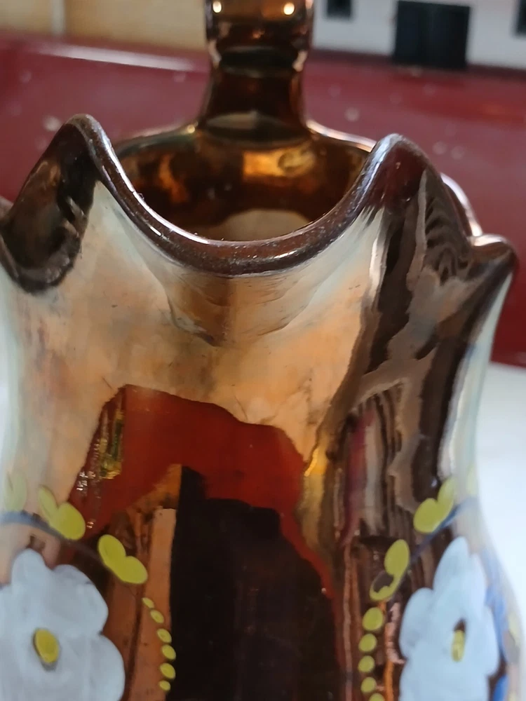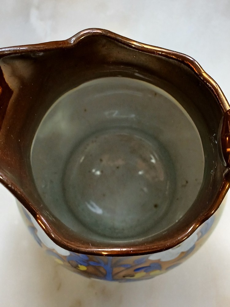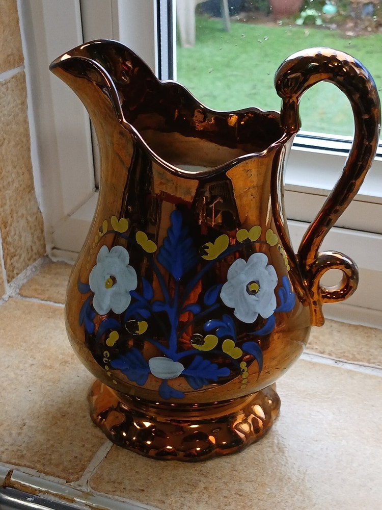 This is an antique c1880 Staffordshire Lustre jug, measuring 8" in length, 8" in height, and 7" in depth. Handmade from clay in the United Kingdom, it features a lustre finish and hand-painted floral art. The jug, made in Staffordshire, weighs 751g and is a Victorian decorative piece with a production style of art pottery. Care instructions recommend hand washing only. No maker's stamp. It is in perfect condition, with no chips or cracks. There are a few small losses to the floral decoration, commensurate with age and use. From a pet and smoke-free home. I shall post Royal Mail Tracked 24. Thanks for looking.