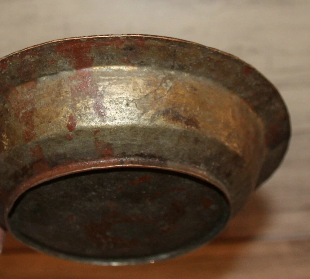 Antique hand made wrought tinned copper bowl Thank you for taking the time to view this auction, please take a moment to view my other items. Lovely Antique hand made wrought tinned copper bowl from 1900's - 1930's. Size - about 1 inches high - 6 inches diameter, 3 cm high - 16 cm diameter. Condition - have dents, wears, spots and scratches. We have represented this item precisely and honestly to the best of our ability.We are not experts so please allow only the photos, not the text, to be your guide.If you have a question regarding the item, please contact us prior to placing your bid.I encourage you to look at my other auctions for a wide variety of items.Best of luck in your bidding and thanks for your time looking at my auction. THANK YOU FOR LOOKING AND HAPPY BIDDING! Item as described: Every item is clearly described in auction description, and accompanied with numerous detailed photos. All items are genuine, authentic and all original. Communication: We will answer to all your questions immediately, later within 24 hours, depending on time zone differences. Shipping time: We ship with registered air-mail delivery. Delivery takes about 10-15 business day, after your payment clears paypal. WE SHIP ON NEXT BUSINESS DAY AFTER PAYMENT RECEIVED . Tracking information will be available on first/second business day after date of shipment. You will be informed via EBay system once item ships. Shipping and handling charges: The shipping charges are based on Post international tariff, and calculated with the item's safety and securely packaging needs. Multiple purchases will be calculated in one combined shipment to save our customers shipping taxes. THERE ARE NO HIDDEN SHIPPING CHARGES IMPOSED! Cases: If you are not satisfied with your purchase, please inform us and we will take immediate actions to resolve your request. Normally, refunds are provided. We will refund your money in full, and you must return the item in same condition as you receive it. inkfrog terapeak