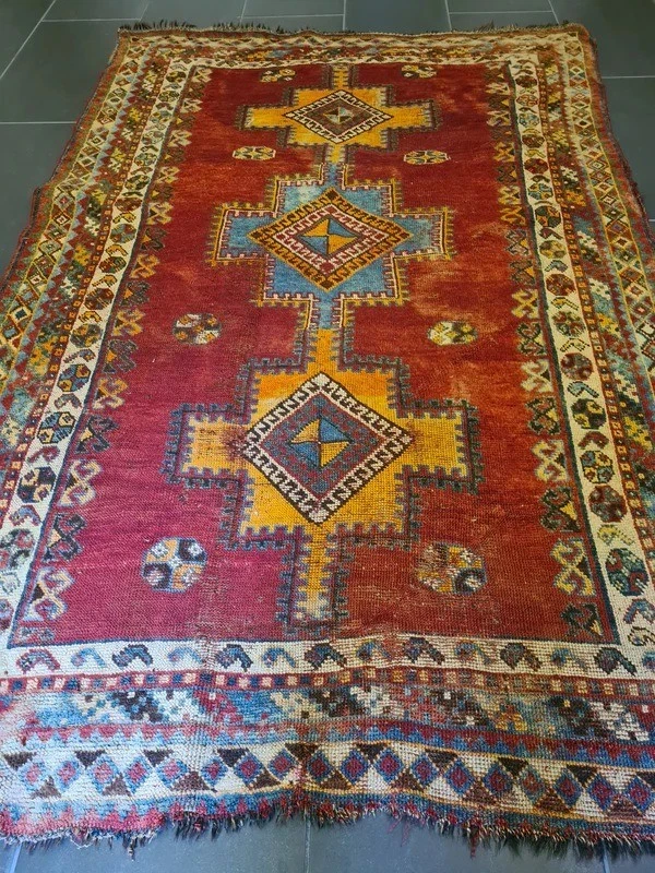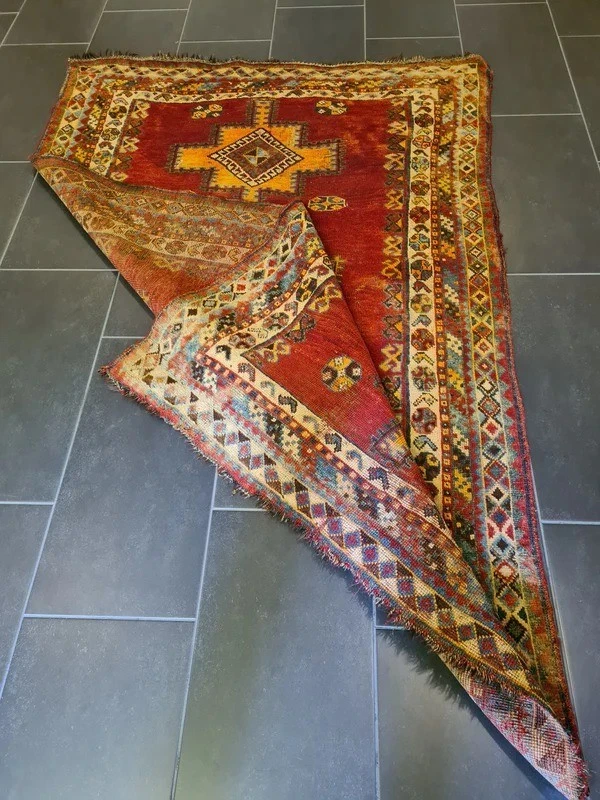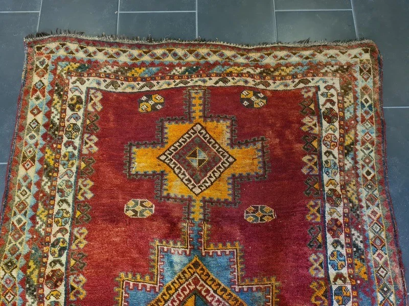 Antiker Orientteppich – Handgeknüpftes Sammlerstück aus dem Orient Erleben Sie die zeitlose Schönheit und das Erbe orientalischer Teppichkunst mit diesem exquisiten antiken handgeknüpften Orientteppich. Ein wahres Juwel für Sammler und Liebhaber klassischer Teppiche, das durch seine Detailverliebtheit und meisterliche Handwerkskunst besticht. Produktdetails: Design: Antikes Muster, reich an traditionellen Motiven Farbschema: Mehrfarbig – harmonische und lebendige Farbkomposition Material: Feinste Wolle auf Wolle, für eine luxuriöse Haptik und Langlebigkeit Knotendichte: 350.000 Knoten pro Quadratmeter, zeugt von höchster handwerklicher Qualität Maße: 193 x 122 cm – ideal für Wohnzimmer, Esszimmer oder als dekoratives Highlight Artikelnummer: GJ/BL585 Zustand: Gut – mit charmanten Gebrauchsspuren, die seine Geschichte erzählen Besonderheiten: Erstklassige Qualität in Material und Motivfarben, leuchtende und gut erhaltene Farbtöne Alter: Ungefähr 100 Jahre – ein wertvolles Stück Geschichte Herkunft: Orient Dieser antike Orentteppich ist ein authentisches Stück orientalischer Teppichkunst, das über ein Jahrhundert Geschichte in sich trägt. Handgeknüpft mit einer beeindruckenden Knotendichte, zeichnet sich dieser Teppich durch seine robusten, jedoch weichen Wollfasern und seine wunderschöne Farbvielfalt aus. Die feinen Details und das antike Muster machen ihn zu einem unvergleichlichen Kunstwerk. Ein besonderes Highlight für Sammler und Kenner, dieser Teppich bringt eine warme und elegante Atmosphäre in jedes Zuhause. Trotz seiner Gebrauchsspuren, die ihm zusätzlichen Charakter verleihen, bleibt er ein bemerkenswertes Beispiel meisterlicher Handwerkskunst und hoher Qualität. Nutzen Sie die Gelegenheit, dieses außergewöhnliche Stück in Ihre Sammlung aufzunehmen oder Ihrem Wohnraum einen Hauch von historischer Eleganz zu verleihen. Lassen Sie sich von der Schönheit und Authentizität dieses antiken Shiraz Perserteppichs verzaubern.