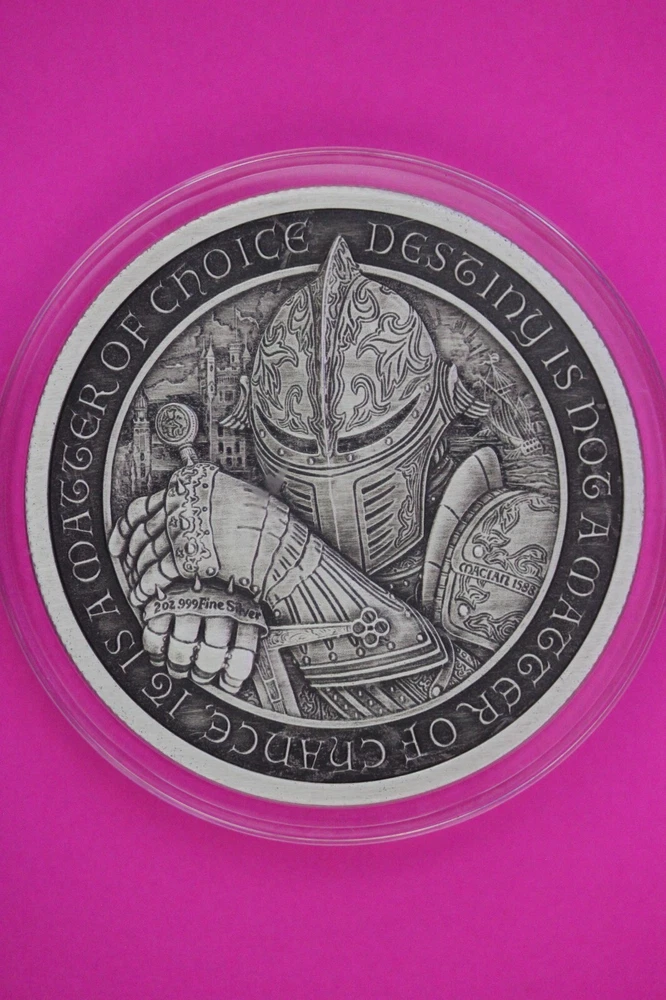 Antiqued Chance Is A Dagger Of Choice 2 Ounce .999 Fine Silver Medal 6039