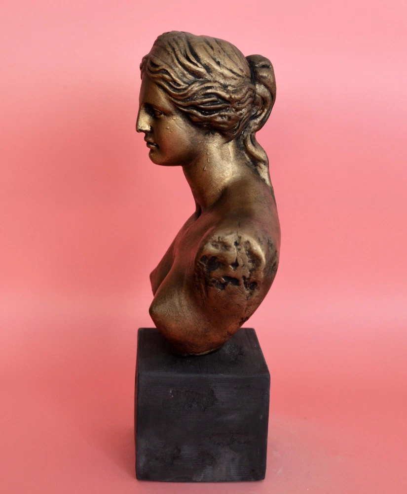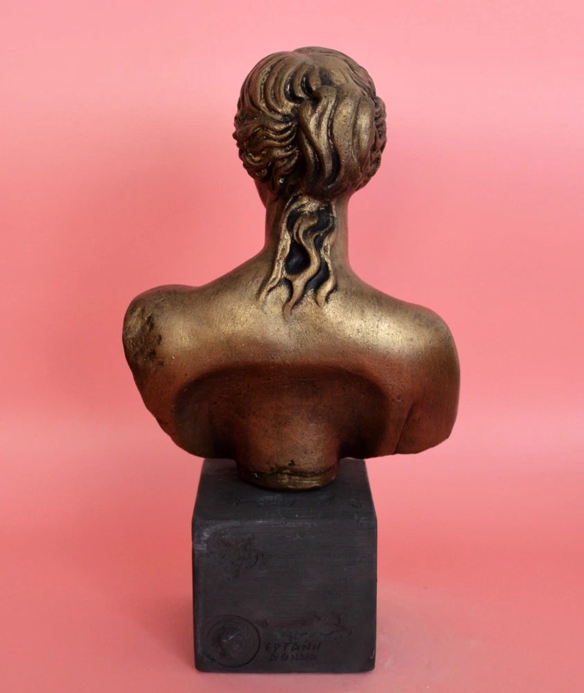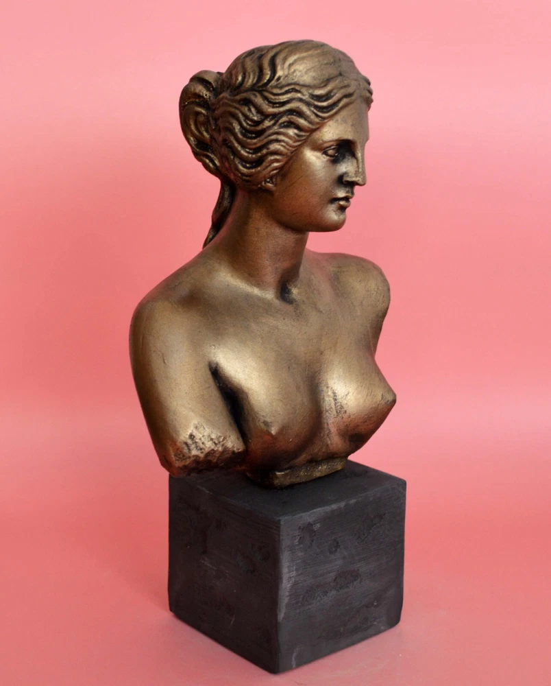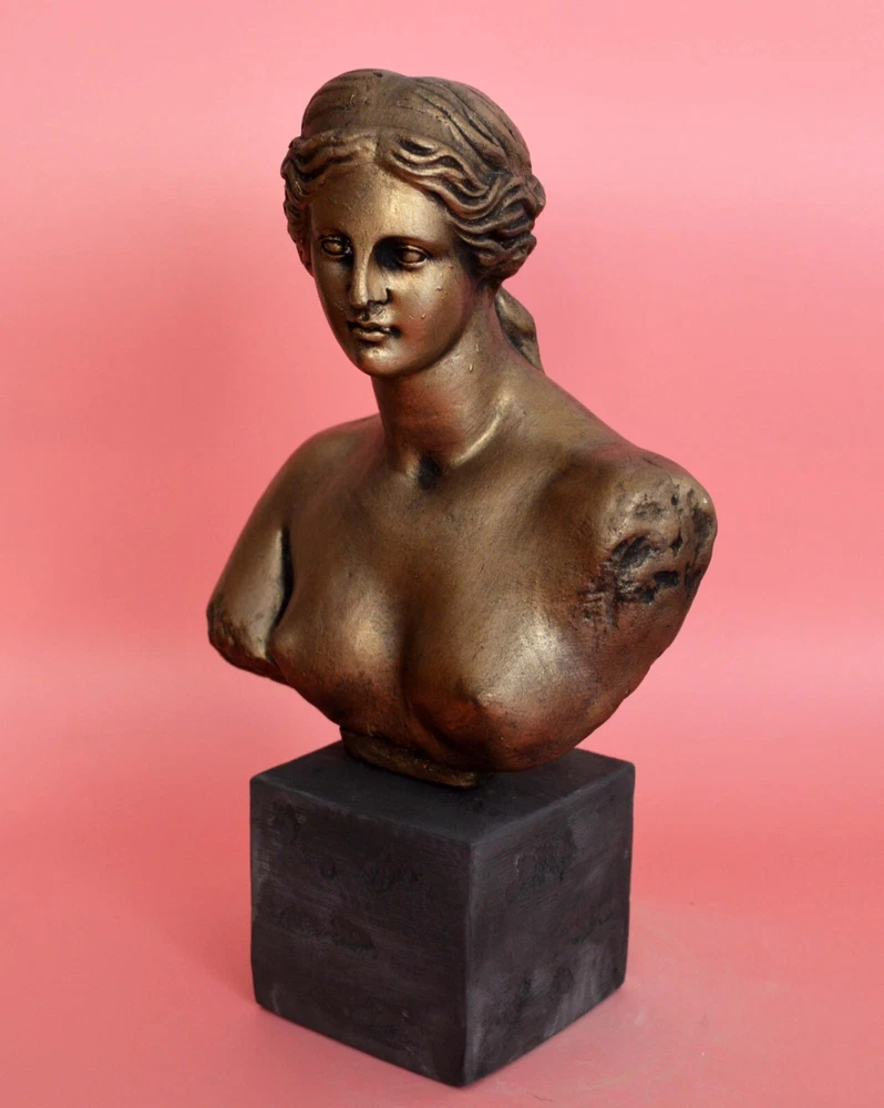 APHRODITE STATUE Aphrodite is the Olympian goddess of love, beauty, sexual pleasure, and fertility. She is regularly attended by few of her children, the Erotes, who are capable of stirring up passion in both mortals and gods at the goddess will. Portrayed as both insatiable and unattainable, Aphrodite was born near the coast of Cythera out of the foam (aphros) Uranus castrated genitals created when they fell into the sea. Even though married to Hephaestus, she had affairs with all Olympians except Zeus and Hades, most famously with Ares, the god of war. She also had famous romances with two mortals, Anchises and Adonis. Her Roman equivalent is the goddess Venus. She is identified with the planet Venus. Please be aware that, due to the fact that our products are either individually cast, carved, hand painted and hand finished, there will inevitably be minor variations in size, colour and texture.(B303-P) Details: Condition: New, Handmade in Greece Material: Casting stone Height: 23 cm - 9 inches Width: 13 cm - 5.1 inches Weight: 1.2 kg ********