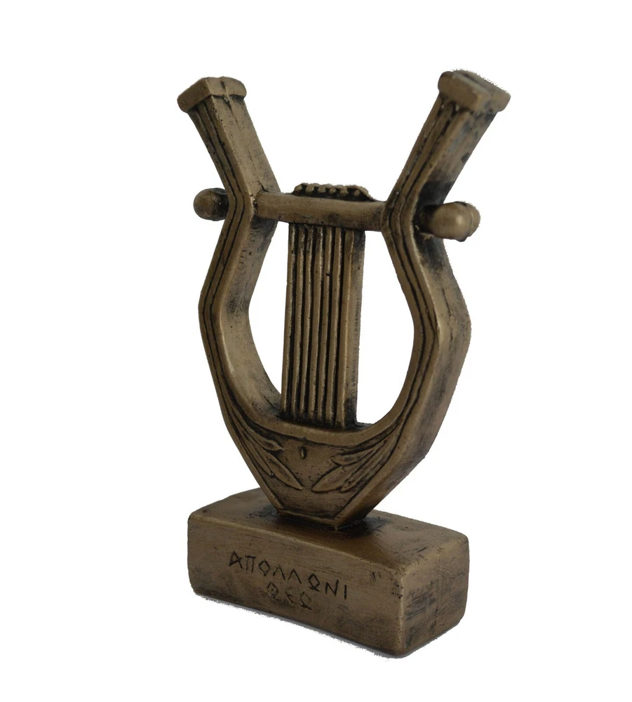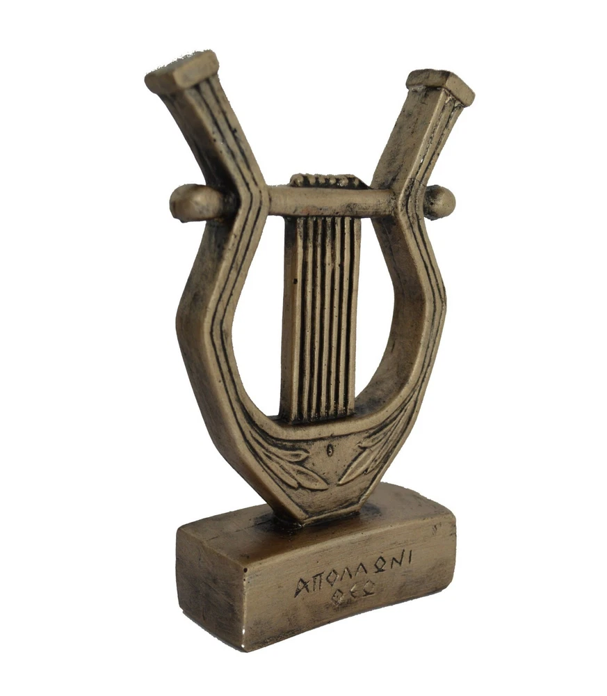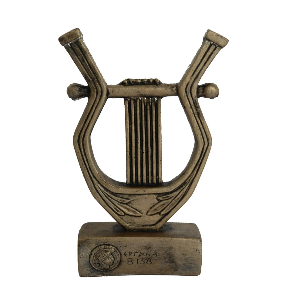 This sculpture is made of casting stone with bronze effect colour! Apollo Lyre Details: Condition: New, made in Greece. Approximately Height: 15cm - 5.9 inches Width: 9.5cm - 3.7 inches Weight: 220 g The lyre is a stringed instrument like a small U-shaped harp with strings fixed to a crossbar, used especially in ancient Greece.Apollo is one of the most important and complex of the Olympian deities in ancient Greek and Roman religion and Greek and Roman mythology. The ideal of the kouros (a beardless, athletic youth), Apollo has been variously recognized as a god of light and the sun, truth and prophecy, healing, plague, music, poetry, and more. Apollo is the son of Zeus and Leto, and has a twin sister, the chaste huntress Artemis. As the patron of Delphi (Pythian Apollo), Apollo was an oracular god—the prophetic deity of the Delphic Oracle. Medicine and healing are associated with Apollo, whether through the god himself or mediated through his son Asclepius, yet Apollo was also seen as a god who could bring ill-health and deadly plague. Amongst the god's custodial charges, Apollo became associated with dominion over colonists, and as the patron defender of herds and flocks. As the leader of the Muses (Apollon Musegetes) and director of their choir, Apollo functioned as the patron god of music and poetry. Hermes created the lyre for him, and the instrument became a common attribute of Apollo. (B138) Tracking number provided!!! Please be aware that, due to the fact that our products are either individually cast, carved, hand painted and hand finished, there will inevitably be minor variations in size, colour and texture. Please be aware that, due to the fact that our products are either individually cast, carved, hand painted and hand finished, there will inevitably be minor variations in size, colour and texture.