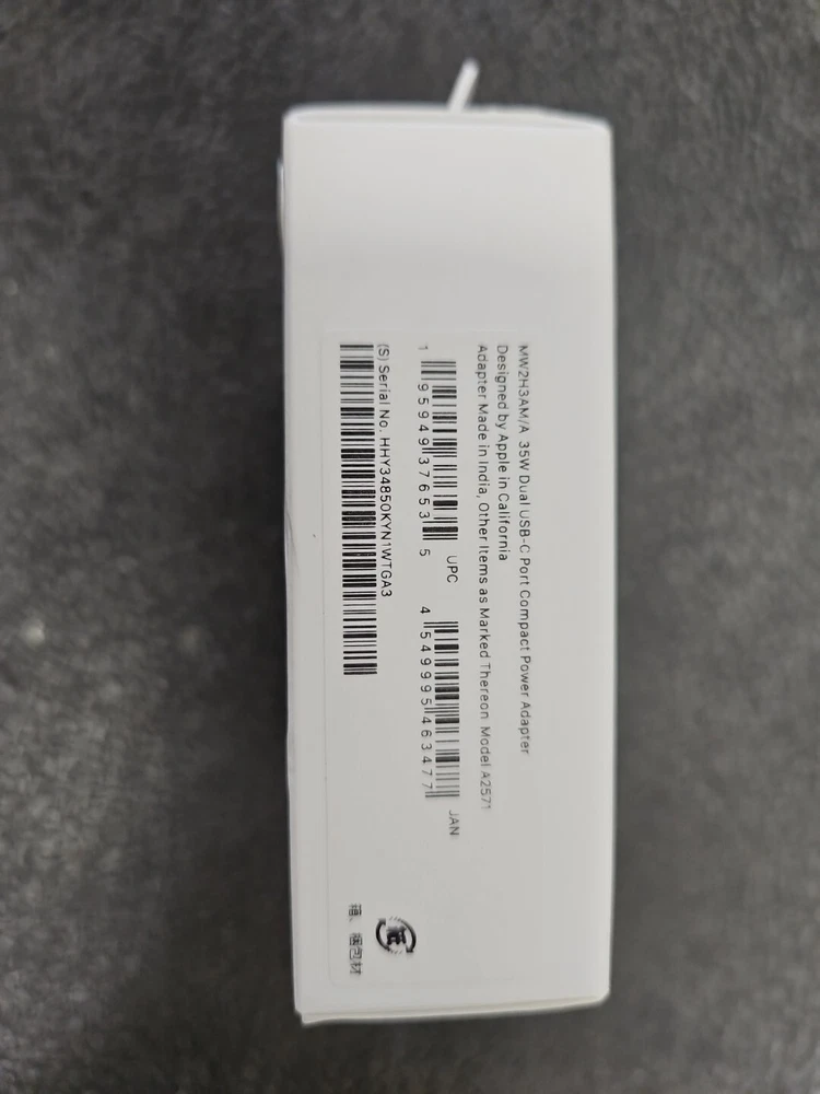 Apple 35W Dual USB-C Port Compact Power Adapter, New. MW2H3AM/A.. Condition is New. Shipped with USPS Ground Advantage.