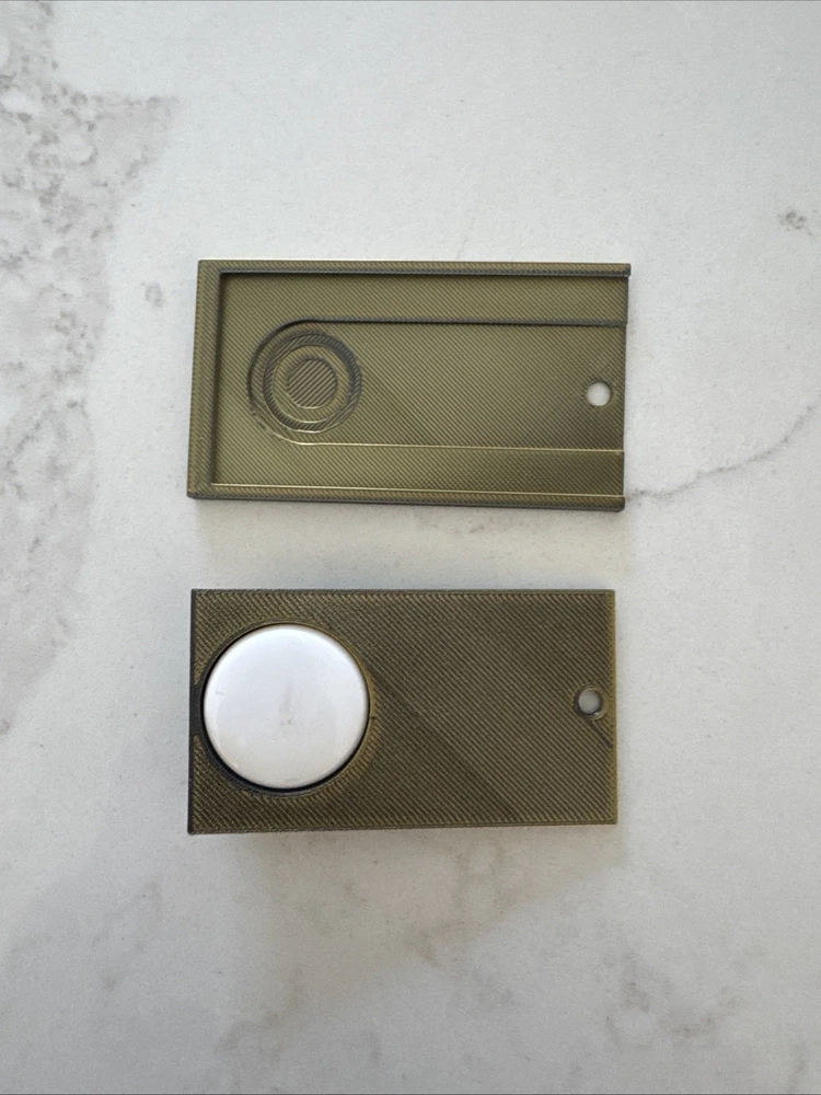 The Apple Air Tag Custom Luggage Tag is a durable and high-quality luggage accessory made of plastic. Designed in the United States, this tag features a sleek and modern design that allows travelers to easily identify their luggage, backpack, or any item they want. Perfect for adding a personalized touch to luggage while providing a convenient way to track and locate in case of loss, this product is a must-have for any frequent flyer. Two initial customization if you message me. I can add two initials on the top of the air tag bubble (required with in 12 hours of purchase or I will print without). Also available colors white, red, black. If I receive no message I will print in white or black (required with in 12 hours of purchase).