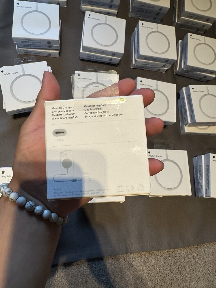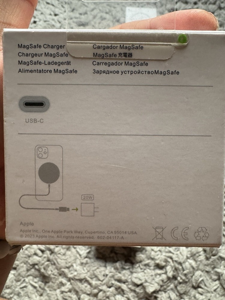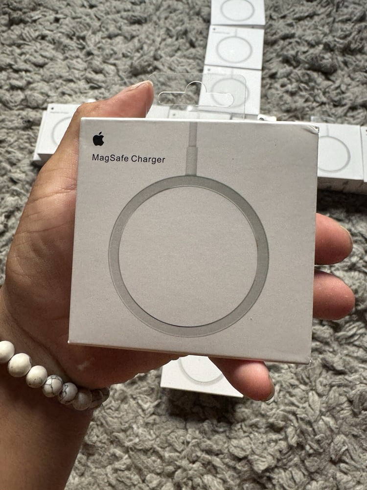 Introducing the Apple MagSafe Wireless Charger with Fast Charging Capability and iPhone AirPods. This sleek charging device is designed for all Apple products and comes with a 3ft charging cable. The charger is made of durable aluminum material and has a magnetic wireless charging standard for easy connectivity. With a single port and 9V voltage, this wall charger is perfect for charging your Apple iPhone 14, 13, 14 Plus, 13 mini, 14 Pro Max, 12 mini, 12 Pro, 12 Pro Max, 12, 13 Pro Max, or 14 Pro. It also features fast charging capabilities and comes with a 1-year manufacturer warranty. The charger is designed with a modern aluminum finish and is compatible with all Apple products.
