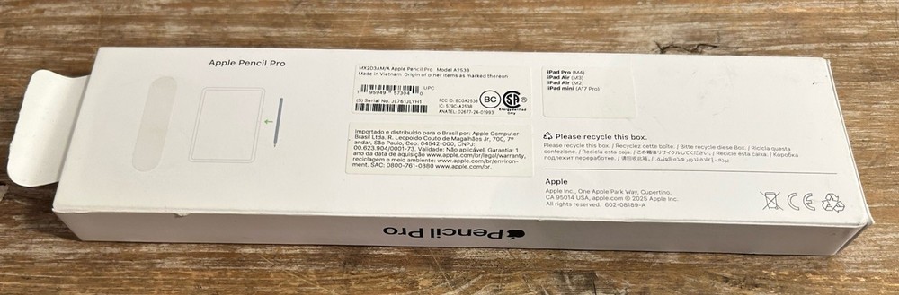 Type:ActiveModel:Apple Pencil Pro A2538Compatible Screen Size:11 in, 12.9 inFeatures:Anti-Scratch, Battery Powered, Bluetooth, Designer, MagneticUPC:0195949573040Color:WhiteCompatible Model:For Apple iPad Air (1st Generation), For Apple iPad Air (3rd Generation), For Apple iPad Air (4th Generation), For Apple iPad Air (5th Generation), For Apple iPad Air 2, For Apple iPad Pro (1st Generation), For Apple iPad Pro (2nd Generation), For Apple iPad Pro (3rd Generation), For Apple iPad Pro (5th Generation), For Apple iPad Pro (6th Generation)Material:Rigid Plasticgtin13:0195949573040Brand:AppleMPN:MX2D3AMAItem Height:6.53 inCompatible Brand:For AppleGTIN:0195949573040
