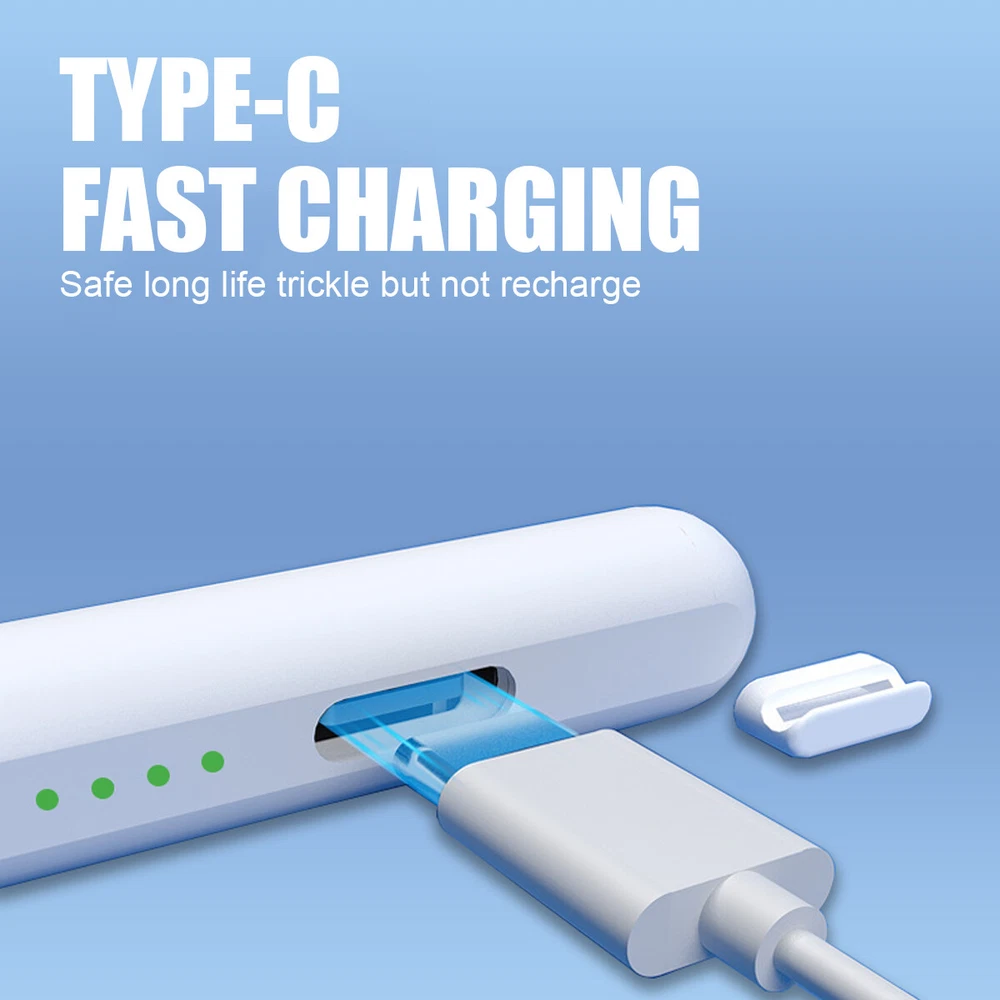 eBay eBay Product Description Description: If you are someone curious about or in need of a stylus pen for drawing, writing, or note-taking, this is an excellent value at its price. This stylus pen with lndicator light and smart touch switch, can be rechargeable by Type-C cable.Our Pencil comes with 1 durable and usable, removable & replaceable pentips which made of high quality POM materials,friendly to your iPad screen and easier to replace. No scratching the screen, no lag, no skipping, and more freedom and naturally to write and working.Take it as the gift to your love, family members.It won't let you down. Feature: 【 Compatible with iPad Models 】 This stylus pen compatible with 2018-2022 iPad & iPad Pro. Such as for iPad Pro 6th/5th/4th/3rd,iPad Air 5th/4th/3rd,iPad 10th/9th/8th/7th/6th,iPad Mini 5th/6th.Not compatible with 2017 and earlier Apple iPad, and also does not support for Android, Microsoft devices. Please confirm whether your model is compatible before buying. 【 Smart Touch Operation & Extra Long Standby 】 No Need Bluetooth or any Apps.Double touches on the top to start or stop the stylus pencil.Built-in 1 00mAh, battery provides 8 hours active use and long standby time, for only 20 minute charging by a USB-C cable. 【 Stylus Pen With Palm Rejection 】 You can rest your palm comfortably on the screen when writing or drawing by the upgraded active pencil with palm rejection. No need to wear gloves. This technology provids you with a more smoother,naturaller writing/drawing experience. 【 Magnetically Attach 】 This rechargeable stylus pen can be attached to the side of iPad by the powerful magnetic, but does not support magnetic charging. More portable, easier to organize,No more rolling and lost. 【 Perfect Precision 】 This Stylus Pen for iPad has an ultra-fine 1.5mm tip which allows precise strokes and easier to write small characters. No scratching the screen, no lag, no skipping. Not easy to break! Compatible Models: Stylus Pen Compatible with apple iPad (6th,7th,8th,9th,10th generations) It compatible with iPad 10th (10.2-inch) A2696/A2757/A2777 It compatible with iPad 9th (10.2-inch) A2602/A2604/2603/2605 It compatible with iPad 8th(10.2-inch) A2270/A2428/A2429/A2430 It compatible with iPad 7th(10.2-inch) A2197/A2198/A2200 It compatible with iPad 6th (9.7-inch) A1893/A1954 It compatible with iPad Pro 3 (11-inch ) A1980/A2013/A1934/A1979 It compatible with iPad Pro 3 (11-inch ) A2228/A2068/A2030/A2231 It compatible with iPad Pro 3 (11-inch ) A2377/A2459/A2301/A2460 It compatible with iPad Pro 3rd (12.9-inch) A1876/A2014/A1895/A1983 It compatible with iPad Pro 4th (12.9-inch) A2229/A2233/A2069/A2232 It compatible with iPad Pro 5th (12.9-inch) A2378/A2461/A2379/A2462 It compatible with iPad Mini 5th (7.9-inch ) A2133/A2124/A2126/A2125 It compatible with iPad Mini 6th (8.3-inch) A2567/2568/2569 It compatible with iPad Air 3rd (10.5-inch) A2152/A2123/A2153/A2154 It compatible with ipad Air 4th (10.9-inch) A2316/A2324/A2325/A2072 NOTE: If your iPad Bluetooth connection uses the Apple Pencil, please clear the Apple Pencil from the Bluetooth list and turn off the Bluetooth function. This will prevent the stylus from being used with the iPad. Specification: Material: Aluminum Alloy Color:White Pencil Diameter Size: 9mm Pencil Nib Size:1.5mm Pencil Length: about 16.5cm/6.5" Charging Port:USB-C Battery Capacity:140mah Charging time: 20-30 minutes Charging head use: 5V 1A or 5V 2A (Do not use high power fast charger, will burn out) Continuous Working Time: 4-8 hours Compatible with most notes & drawing software in the APP Store. Indicator light introduction: When charging: display the current power level and blinking Fully charged: all four lights on When working: green light and display the current battery level Power saving mode: 30 minutes without use automatically switch off Package Included: 1* Stylus Pen 1* Replacement Tips 1* USB C Charging Cable 1* User's manual 1* Storage Box