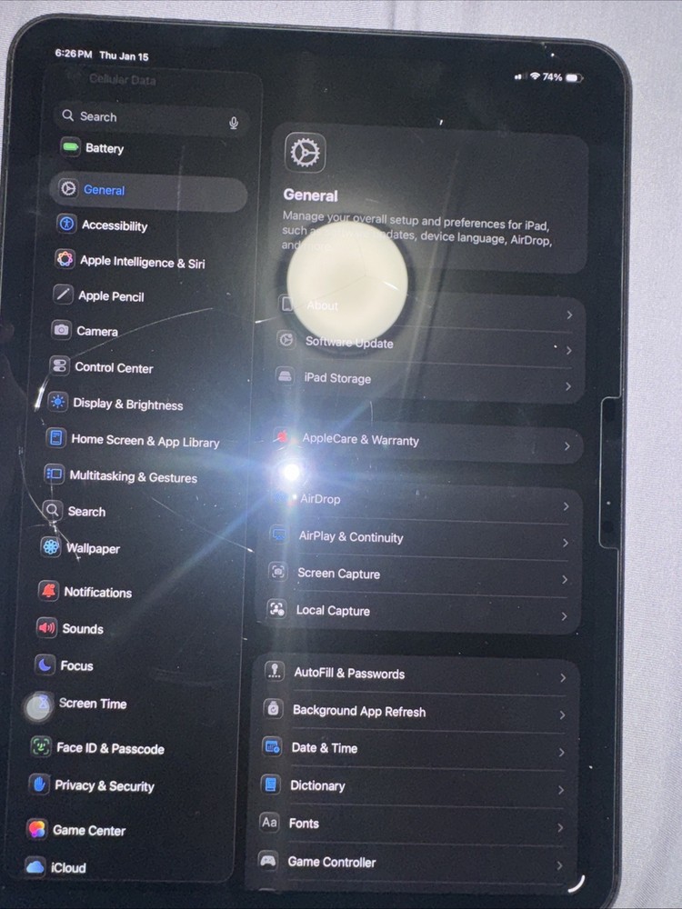 (SCREEN IS NOT CRACKED ITS THE GLASS SCREEN PROTECTOR). The Apple iPad Pro M4 11-inch Wi-Fi Cellular Tablet in Space Black boasts a powerful combination of performance, versatility, and portability. With 256GB of storage, this tablet is perfect for storing a large amount of data, photos, and videos. The 11-inch screen offers a vibrant display for work or entertainment, while the Wi-Fi connectivity ensures seamless connectivity on the go. Whether you're working on the move or streaming content, this iPad Pro provides a premium user experience.