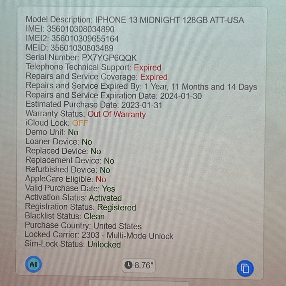iPhone 13 128GB unlocked motherboard Logic board . Good Face ID and fully functional. Clean imei and fully unlocked . 485