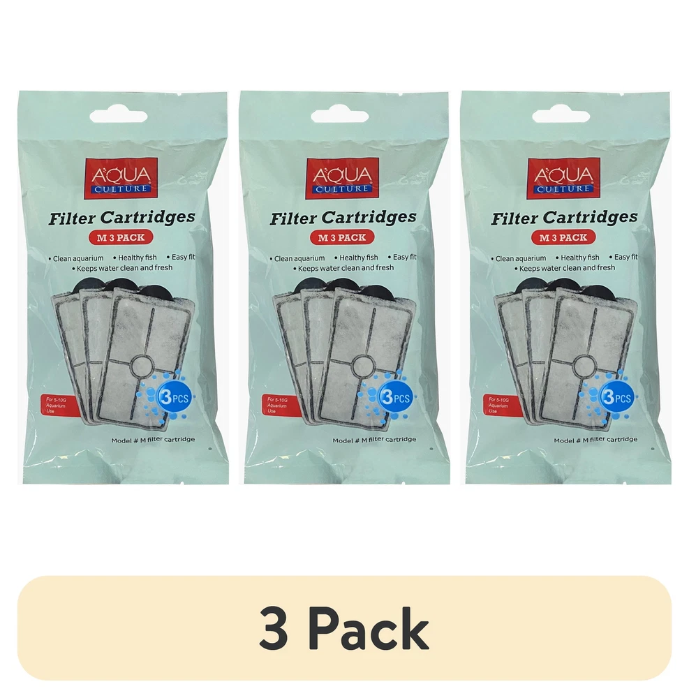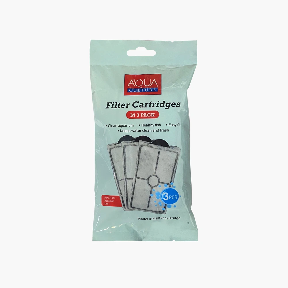 Disposable Filter Cartridges keep aquarium water crystal clear and remove odors and discoloration. The dense, dual-sided mesh catches debris and fish waste, and the activated carbon absorbs odors. Use these replacement filter cartridges in your power filter– each package is color-coded to make it simple to remember which size to purchase. These replacement filters are assembled and ready to use for your convenience. Open the lid of your filter and insert the filter cartridge into the filter. Replace a clogged filter cartridge when there is reduced water flow out of the filter. For best results, change your filter cartridge every two to four weeks or sooner if needed. Size Medium, Width3.13"×Height 5.69”,fits for AQ-10 HOB power filter to use. 3-stage filtration, remove odors ,discoloration and impurities Size:3.13"×5.69”, 3 pcs per packaging Suitable for Aquarium from 5 Gallon to 10 Gallon Recommend to replace filter cartridges every 2-4 weeks to the water quality