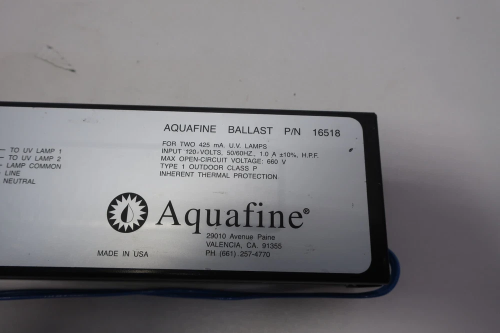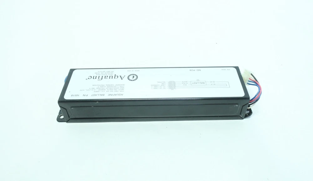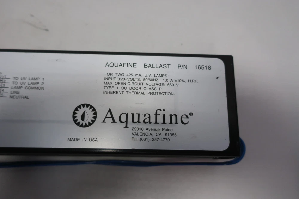 Aquafine 16518 Electronic Uv 120v-ac Ballast Brand: AQUAFINE Condition: Used Model: 16518 Voltage (AC): 120 V-AC Shipping Weight: 7.6 lbs Shipping Dimensions: 14.5 x 6 x 5 in SKU: D910569 (TEV03) Category: Ballasts Shipping 1. We offer Free Domestic Shipping store wide for standard ground delivery for items under 120 lbs (actual or dimensional weight). Any item over 120 lbs (actual or dimensional) is subject to freight costs. 2. We always offer combined expedited and international shipping discounts for multiple items. Final combined shipping rates will depend on the item's weight and dimensions. 3. We guarantee same-day ground shipping for all orders placed before 12:00 PM EST. Orders placed after the cut off time will be shipped out the next day. 4. We can ship through express or overnight UPS service at the buyer's expense. Our daily expedited shipping cut-off time for express shipments is 4:00PM EST 5. We offer Collect Shipping via UPS and FedEx. 6. If the item is to be shipped via Freight, please contact us for a shipping quote. You may also choose to have your shipment picked up by your carrier. We will palletize, strap and shrink-wrap your shipment. We offer a 7 day courtesy holding period for our clients. Orders are subject to cancellation after 7 days with a 20% restocking fee. 7. INTERNATIONAL BUYERS: Import duties, taxes, and charges are not included in the item price or shipping cost. These charges are the buyer's responsibility. Please check with your country's customs office to determine what these additional costs will be prior to bidding or buying. Terms of Sale 1. We offer site-wide Free Returns (Excluding Freight Shipping Orders) 2. All refund requests must be initiated within 30 days of the Date of Receipt. Transactions outside of 30 Days are not eligible for refunds. 3. We offer Full Refunds for items that are Not as Described or Non Functional. Please refer to the original listing for additional details and terms. Items must be received back for inspection prior to refund. 4. Items sold as "New" or "New (Other)" must be received back in original condition including all packaging with intact factory seals to qualify for a refund. Removing an item from the manufacturer's packaging, or tampering with Factory Seals disqualifies the item from a refund. 5. NRI is not responsible for technical specs or fitment/application of a part. Please contact our Client Relations Department for all other return inquiries. Returns 1. All refund requests must be initiated within 30 Days of Date of Receipt. Transactions outside of 30 Days are not eligible for refunds. 2. We offer Full Refunds for items which are Not as Described or Non Functional. Please refer to the original listing for additional details and terms. Items must be received back for inspection prior to refund. 3. Items sold as "New" or "New (Other)" must be received back in original condition including all packaging with intact factory seals to qualify for a refund. Removing an item from manufacturer's packaging, or tampering with Factory Seals disqualifies the item from a refund. 4. NRI is not responsible for technical specs or fitment/application of a part. Please contact our Client Relations Department for all other return inquires. About NRI Welcome to NRI Industrial Sales We strive to offer the industry an economical solution for industrial parts and equipment. We are able to offer unbeatable value on quality products as we are the direct source. We pride ourselves in our continual effort of environmental improvement by keeping hundreds of tons of obsolete parts and equipment out of landfills and scrap piles while being committed to offering it all back to you at supplier pricing. Why go to a distributor when you can get the same parts fast for a fraction of the cost? We have years of collective and comprehensive knowledge and experience in industrial materials management. This means that we are able to provide the most value and innovation per your dollar spent. We ensure that your satisfaction is guaranteed, always. Happy Shopping! NRI Industrial Store Categories Analyzers Backup UPS Ball Valves Bearings Belts Blower Pumps Brakes & Clutches Bushings Butterfly Valves Capacitors Cavity Pumps Centrifugal Pumps Check Valves Circuit Breakers Circulator Pumps Conduit Fittings Contactors Control Valves Controllers Controls Converters Cooling Fans Couplings Diaphragm Pumps Diaphragm Valves Disconnect Switches Displays Distribution Panels Diverging Valves Electric Electric Motors Electrical Enclosures Flow Indicators Flowmeters Flowtubes Fuse Holder Fuses Gage Valves Gate Valves Gauges Gear Pumps Gear Reducers Globe Valves Hand Tools Heating and Cooling Hoisting and Rigging Hubs Hydraulic Cylinders Hydraulic Filters Hydraulic Hoses Hydraulic Motors Hydraulic Pumps Hydraulic Systems Hydraulic Valves Knife Gate Valves Lab Equipment Lighting Line Reactors Machining and Milling MCC Buckets Measurement Metering Pumps Miscellaneous Motor Drives Motor Starters Multi Stage Pumps Needle Valves Oil Seal Other Pumps Other Valves Overload Relays Packaging and Labeling Piston Valves Plug Valves Plugs and Receptacles Pneumatic Cylinders Pneumatic Directional Valves Pneumatic Exhaust Valves Pneumatic Filter Elements Pneumatic Filter-Regulators Pneumatic Filters Pneumatic Grippers Pneumatic Hoses Pneumatic Lubricators Pneumatic Motors Pneumatic Regulators Pneumatic Relays Pneumatics Pressure Regulator Valves Pulleys Regenerative Blowers Relief Valves Replacement Parts Resistors Robots Roller Chains Rotary Lobe Blowers Rotary Lobe Pumps Safety and Security Safety Equipment Sensors Servo Sheaves Shock Absorbers Sleeves Solenoid Coils Solenoid Valves Split Case Pumps Sprockets Steam Traps Strainers Submersible Pumps Switchgear Temperature Controllers Tool Storage Transducers Transformers Transmitters Vacuum Pumps Valve Bodies and Manifolds Vertical Pumps Welding and Cutting Other