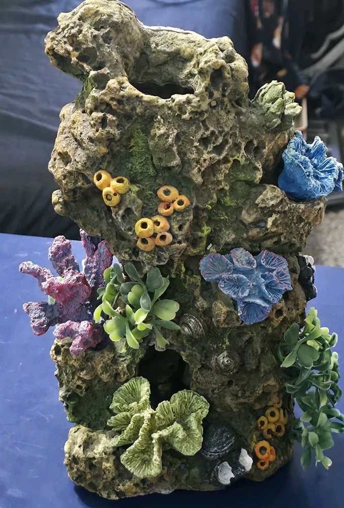 This product is a set of two aquarium fish tank decorations made of resin, specifically designed to create a realistic underwater reef and submarine environment. The multicolor ornaments are suitable for all water types and are perfect for enhancing the aesthetic of any aquarium fish tank. Ideal for adding a touch of life and personality to your underwater ecosystem, these decorations are a great addition to any aquarium setup.